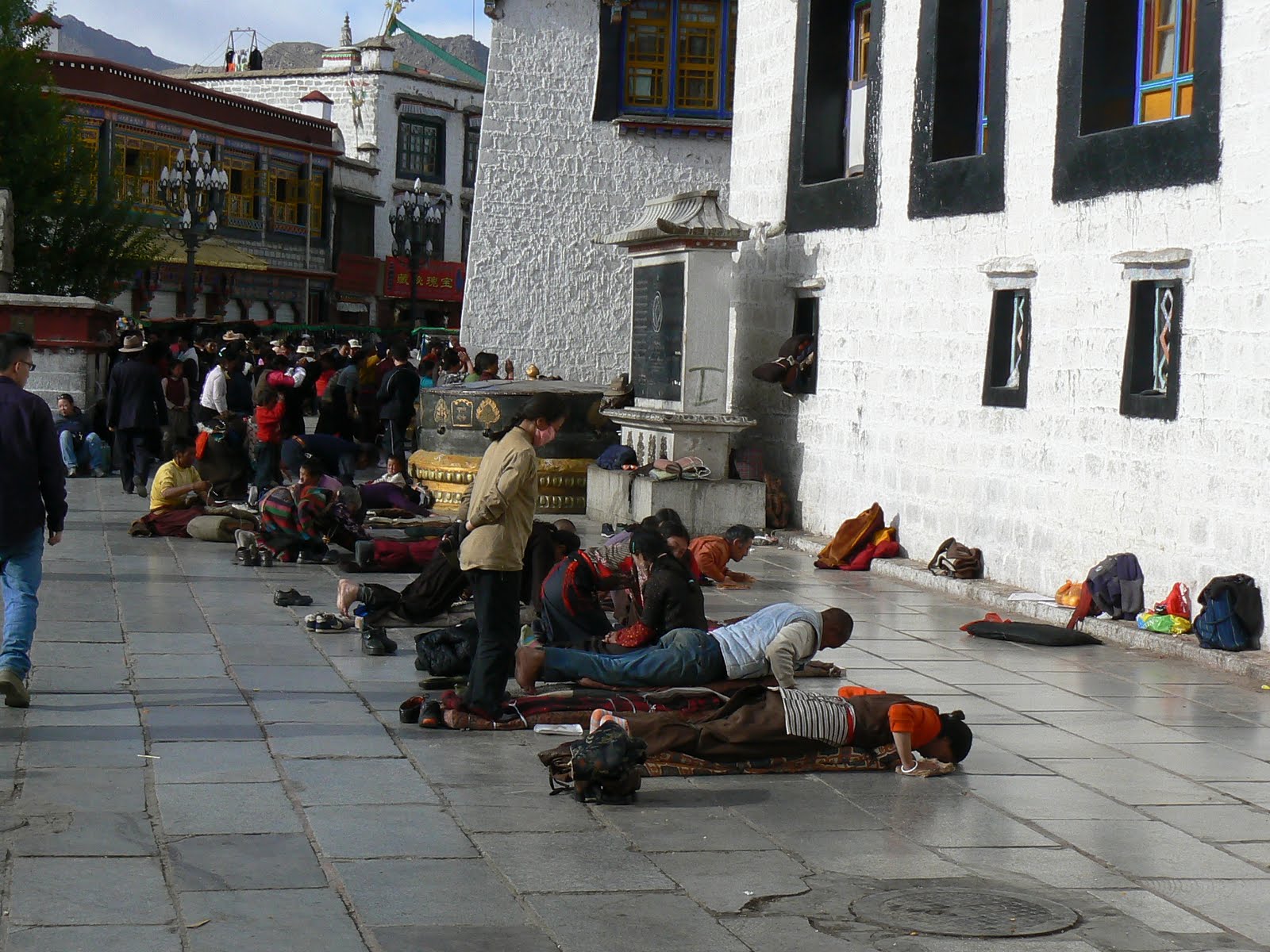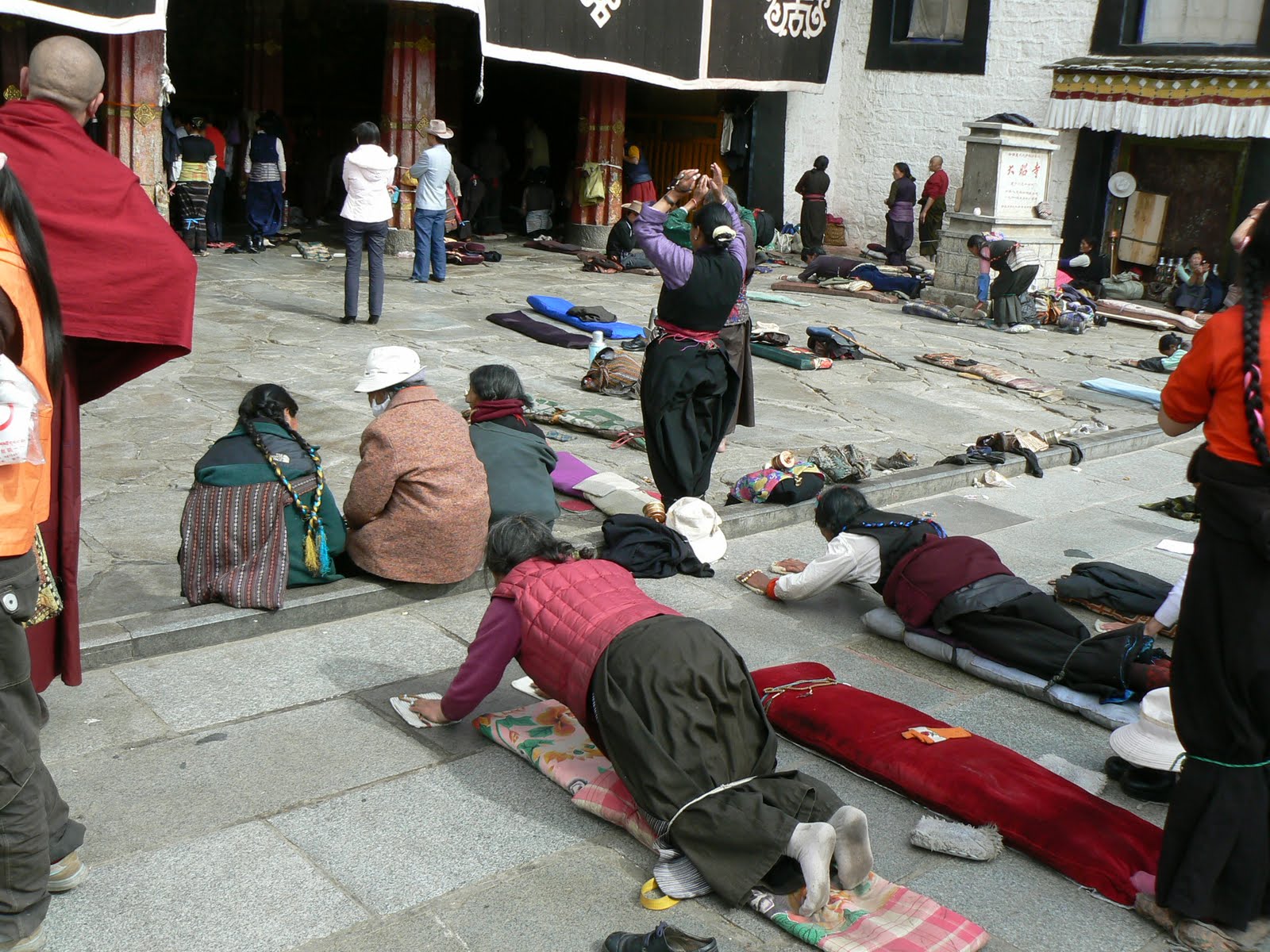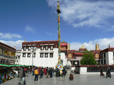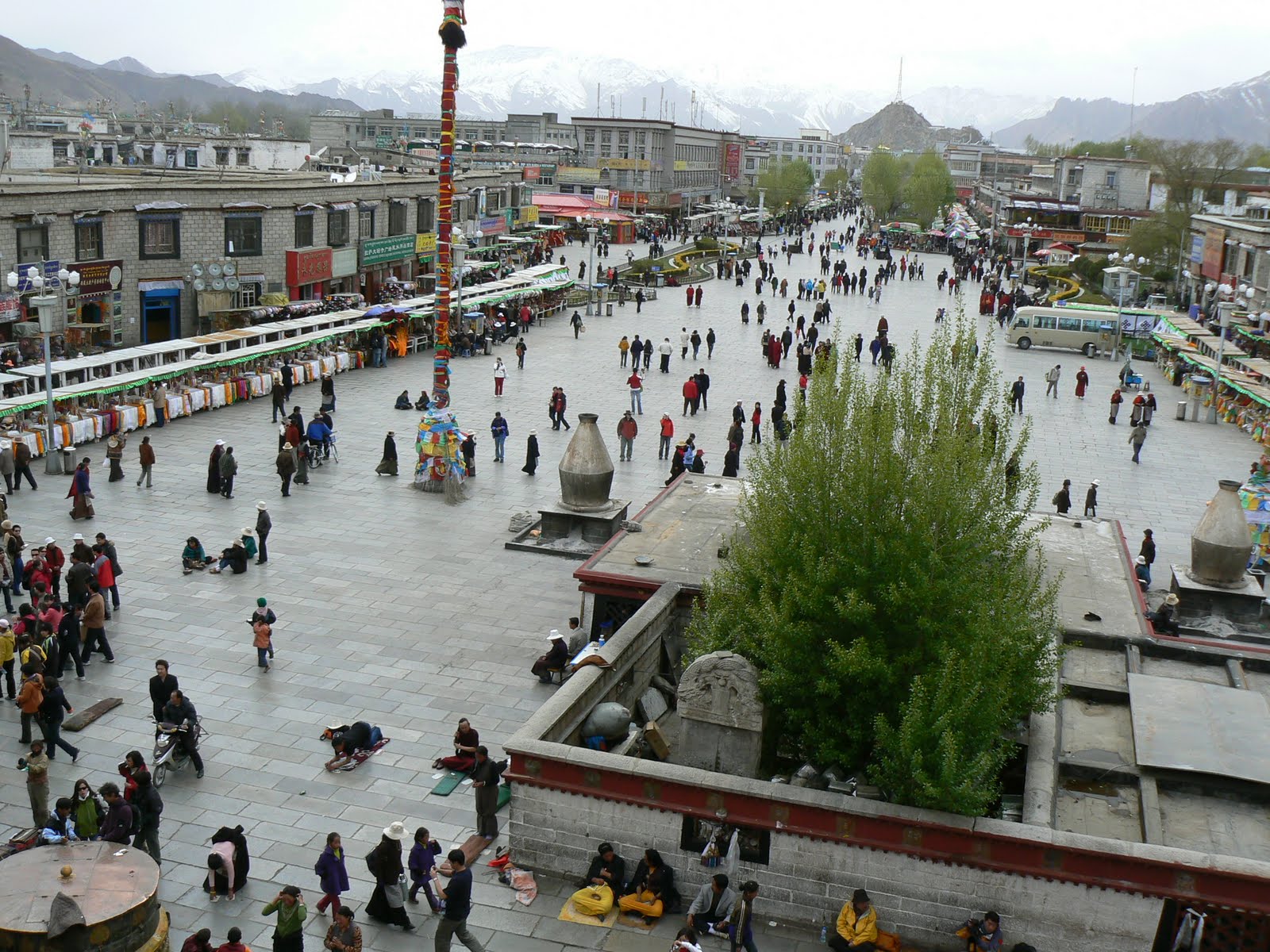 Pentru multi turisti, primul contact cu lumea budismului tibetan va fi in Lhasa. In mijlocul cartierului Barkhor, un cartier animat, colorat, exotic, imbinand spiritul mercantul cu cel religios, se afla templul Jokhang, Vaticanul budismului tibetan. Acest lacas, cel mai sfant din Tibet este si cel mai vechi construit de regele Songtsen Gampo care s-a casatorit cu doua printese – printesa nepaleza Bhrikuti si printesa chineza Wencheng. Amandoua au adus ca zestre cate o imagine sfanta al lui Buddha din tarile lor, iar in jurul lor a fost construit templul Jokhang. Zilnic, mii de pelerini si turisti se invart in jurul templului, intr-o procesiune sacra in jurul manastirii pe strazi – kora, iar atmosfera iti sugereaza un carnaval medieval – pelerini care se prosterneaza, inaintand incet, turisti straini cu aparate de fotografiat, copii in tinute medievale, femei imbricate “de duminica”, murmurand mantre si invartind darchen-uri, este un loc magic in care iti doresti sa te intorci iar si iar.