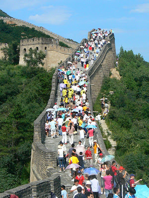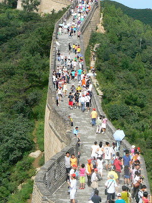 O excursie la Beijing nu poate fi completa fara o vizita la Marele Zid. Desi o intreaga natiune a fost intristata de franchetea primului cosmonaut chinez care a spus ca in ciuda legendelor, Marele Zid nu poate fi vazut din spatiul extra-terestru, lungul zid de peste 5000 de kilometri poate fi vizitat in mai multe locuri din zona Beijing, cel mai popular fiind Badaling. O autostrada cu numeroase benzi te duce pana in punctul in care un teleferic te ridica pana pe metereze, iar de aici, in functie de noroc… Daca vi intr-o zi de weekend, vei fi in mijlocul unei mase care iti va spulbera orice dubiu cum ca China n-ar avea 1 miliard de locuitori. Daca nimeresti, in mijlocul saptamanii, de preferinta in extra-sezon, te vei putea bucura intr-o mai mare masura de incredibilul zid serpuind peste dealuri, ca un boa gigantic. Pigmentat din cand in cand cu turnuri de aparare, Marele Zid Chinezesc este cu adevarat un monument incredibil.