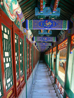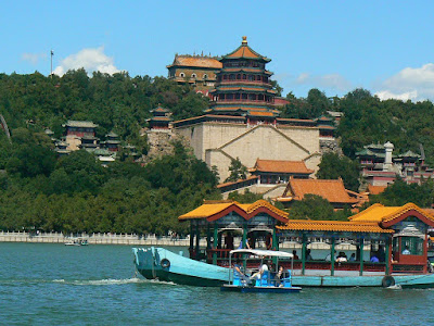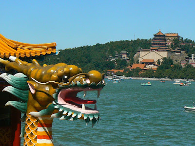 Un al doilea complex imperial remarcabil este Palatul de Vara. Aici, ordinea si geometria palatului central se relaxeaza… doar suntem in palatul vacantelor… Numeroasele palate, pavilioane si temple imbratiseaza un lac brazdat de zeci de barcute. Personal, mi-a placut mai mult acest complex decat Orasul Interzis, dar de gustibus… Pe lac, se afla nuferi, pe margine, lumea se plimba, iar intreaga aceasta lume este dominata de templele de pe Dealul Longevitatii. Din nou, ai nevoie de cateva ore bune pentru a te plimba, a admira, a patrunde atmosfera, a naviga pe lac cu ajutorul vaporaselor ornate cu capete de dragoni.