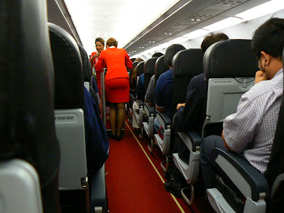 Dar Air Asia nu inseamna doar zboruri ieftine, a devenit si un brand cool – avioane pictate cool, poze de stewardeze, rosul aprins folosit pentru culoarea de marca, stewardezele dragute imbracate in acelasi rosu aprins sunt o déjà un icon al Asiei calatorilor. Cat costa Air Asia ? Pai pe acolo, pe rutele sud-est asiatice cam orice zbor nu e mai mult de vreo 75 – 80 euro, chiar daca zbori si 4 ore cum am zburat asta-vara de la Kuala Lumpur la Hong Kong. Pe distantele lungi, cum ar fi Londra, preturile sunt joase, dar nu moca – am simulat azi si un zbor prin aprilie ar costa cam 600 euro, iar in octombrie 2010, cam 500 euro… Dar la Air Asia trebuie sa fi atent la promotii. Din cand in cand, Tony da cu milioane de bilete gratis sau la 1 ringgit in populatie… si daca le prinzi …