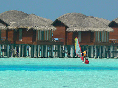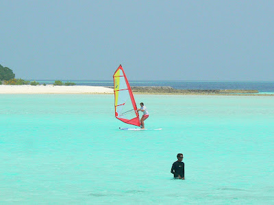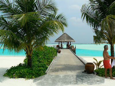 In primul rand, cum am ajuns pe acolo. Pai simplu, m-am dus in Male, capitala Republicii Maldive si am facut rost de un dhoni, o barca cu motor, destul de lenta, dar destul de mare (de obicei, intra 40 pasageri intr-un dhoni, acum am fost doar 4) cu care ne-am plimbat dintr-o insula in alta. Una dintre insulele pe care am debarcat a fost si insula pe care este hotelul Anantara, undeva la vreo cativa zeci de km sud de Male. Aceste hoteluri-insula sunt destul de izolate in Maldive, in afara de baietii de la aprovizionare si turistii care pleaca in foarte scumpele excursii “optionale”, neexistand prea mult contact cu exteriorul.