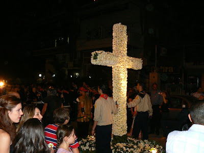 Ne-am dat seama cand am intrat in cartierul crestin imediat… Strazile forfoteau de oameni imbracati la tol festiv, iar toate ferestrele erau impodobite cu cruci laminate… Din pacate, cu cat ne apropiam mai mult de centrul festivitatilor, cu cat se inainta mai greu – multimea devenea din ce in ce mai densa… Printr-o multime de toalete simandicoase de dama si toale de firma cool ale tipilor. Cu chiu si vai am ajuns in piata din fata unei biserici. De jur imprejur, la balcoane, se petrecea… Parca n-ar fi fost Vinerea Mare… Patimile noastre de a strabate multimea s-au incheiat insa cat de cat in momentul in care procesiunea a inceput. Si sincer, a meritat tot efortul !