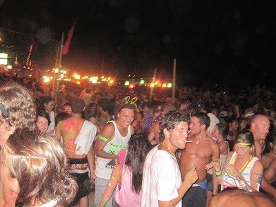 Cam asta e Full Moon Party, de la care am plecat pe la 7 dimineata, in vreme ce soarele rasarea peste muntii de gunoaie rezultate din distractia turistilor, barcile se intorceau in Koh Samui, cuplurile se plimbau romantic printre oameni lesinati pe plaja, travestitii zambeau lasciv barbatilor in speranta ca macar pe ultima suta de metri vor prinde ceva si ultimii petrecareti dansau pe platformele inaltate pe plaja.