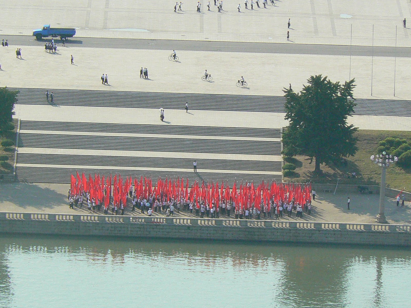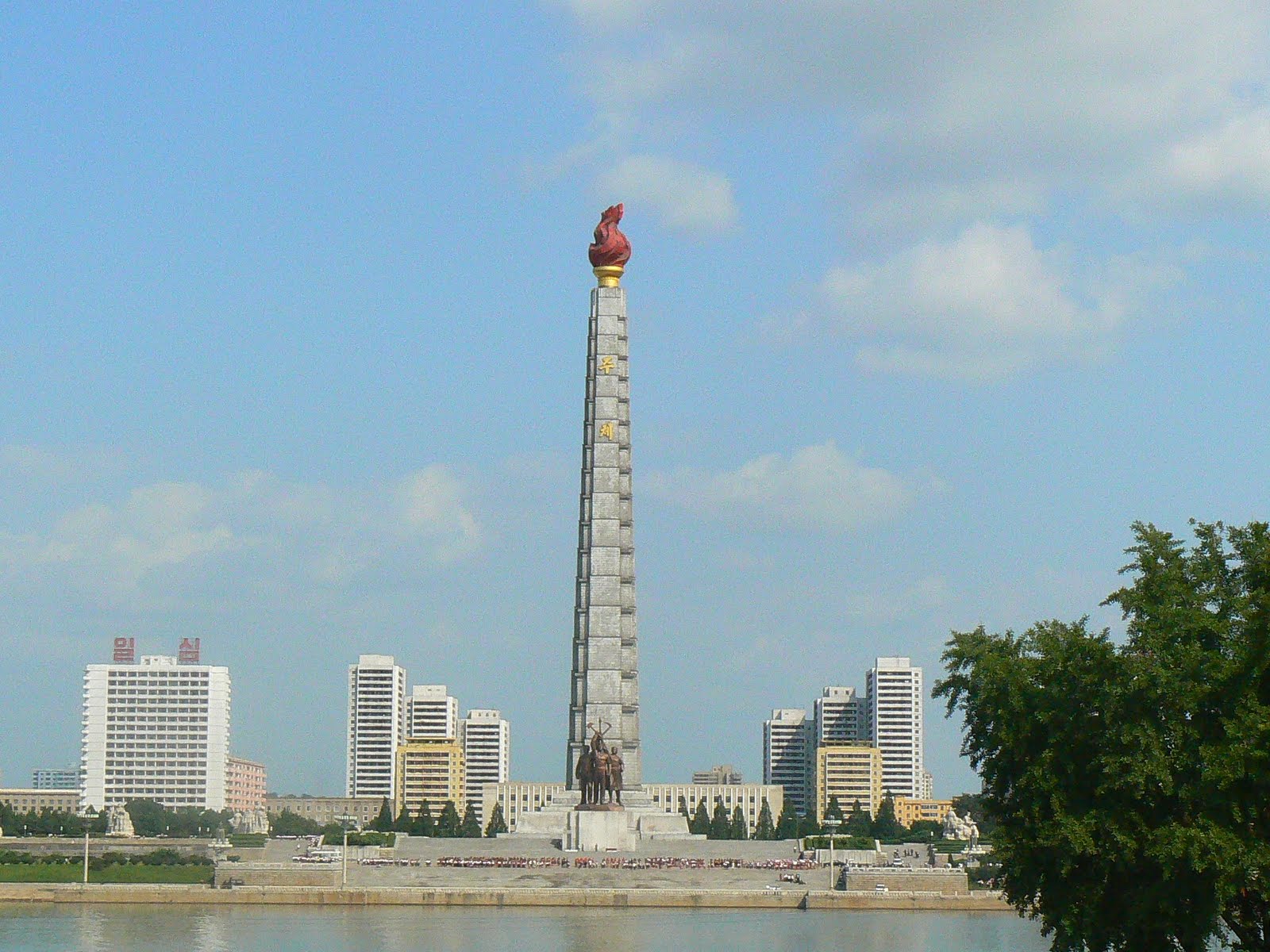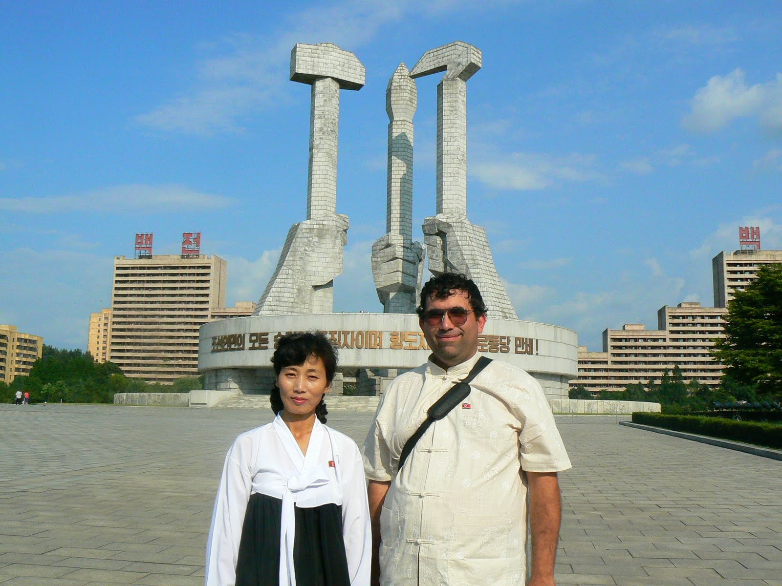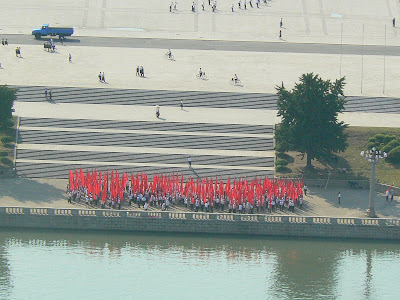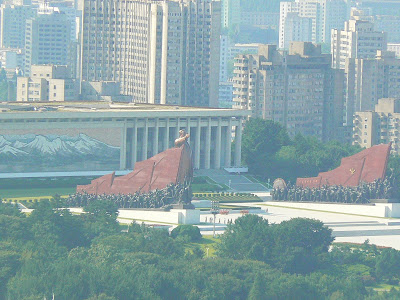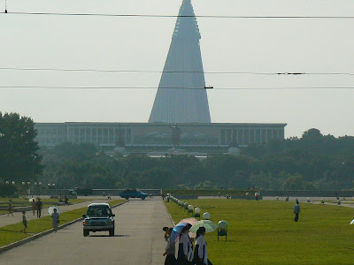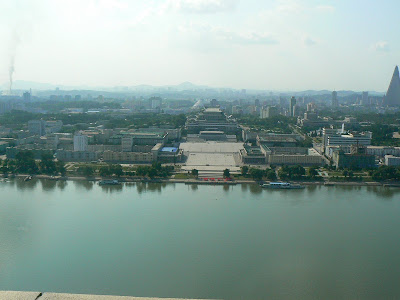 Ca peste tot, apare ghida in costum popular, ni se face statistica a cati bolovani au fost folositi la constructia monunetului, din pacate aici nu apare nici o scrisoare de scuze de la americani… In schimb, sunt oripilat de blasfemia de peste rau… Daca te uiti spre statuia lui Great Leader oricat de great ar fi, tot este un pigmeu pe langa imensa piramida din spatele ei ce urmeaza sa fie un hotel pentru capitalisti verosi… Vai, ce blasfemie !!!