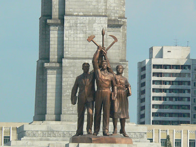 Urmatorul stop este la “Monumentul Fondarii Partidului”. Great Leader nu a dat la o parte nici o clasa sociala cum a facut Lenin de exemplu cu secera si ciocanul lui care ii expulzase pe intelectuali de la conducerea societatii… Ei bine, nu, Great Leader a recunoscut dintotdeauna ca intelectualii trebuie sa fie la putere alaturi de clasa muncitoare si de taranime, asa ca simbolul partidului nu contine doar clasica secera si clasicul ciocan, ci si o pensula simbol al intelectualitatii… De altfel si RDGistii au ajuns la aceeasi concluzie, dar cum nemtii sunt mai practici si orientati spre tehnica au ales compasul ca simbol al intelectualitatii… Coreenii, mai artisti au ales pensula…