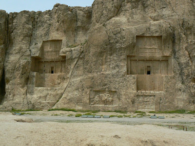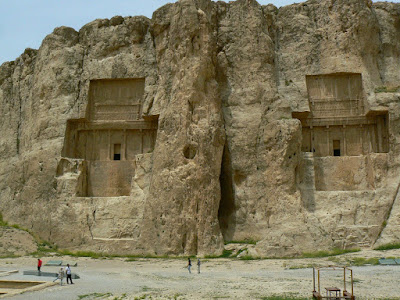 Pe dealurile ce domina orasul locuiesc zeii. Sau ma rog, semi-zeii, aici se afla sculptate in piatra dealurilor mormintele marilor regi Artaxerxes II si Artaxerxes III. Mormintele sunt similare cu cele de la Petra – imense structuri sapate in piatra… Desi mormintele nu sunt la fel de spectaculoase ca cele de la Petra, merita efortul sa urci… la picioarele tale se afla intregul Persepolis si doar de aici, poti sa-ti faci o impresie cat de cat corecta asupra maretiei vechii capitale.