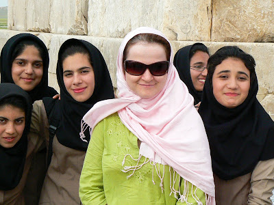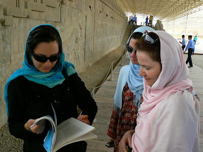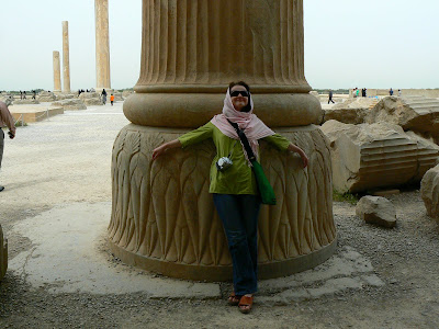 Persepolis este la 70 km de Shiraz, dar transportul public este destul de sporadic. De aceea majoritatea turistilor vin cu un tur din Shiraz. Si pentru ca voiam sa aflu mai multe despre metropola lumii antice, am ales sa luam si un ghid cu noi. De fapt, am avut o ghidusa buna vorbitoare de engleza. Din vorba in vorba, aveam sa aflu ca de fapt ea nu este persana, ci azera si destul de mandra de acest lucru. Azerii sunt un popor turcic, care vorbesc o limba extrem de similara cu turca, dar spre deosebire de turci, sunt siiti si nu suniti ceea ce ii apropie intr-un fel de Iran. In nord-vestul Iranului in zona Tabriz exista o mare comunitate azera, iar ghidusa noastra era de pe acolo, dar maritata in Shiraz.