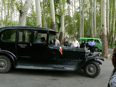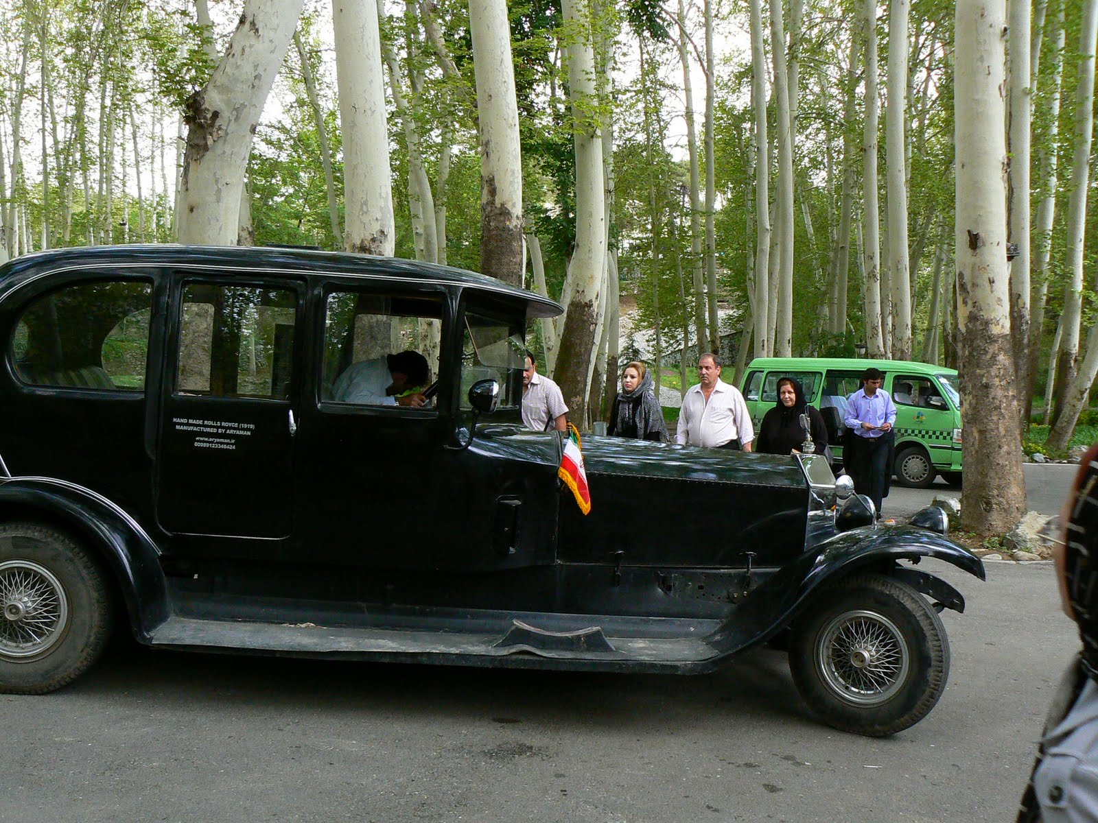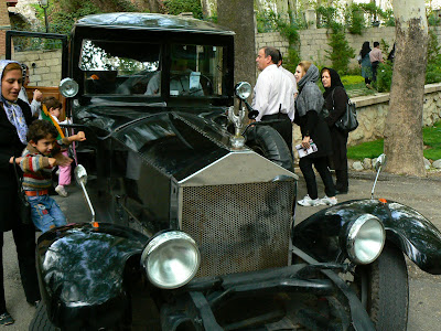 Punctul forte al vizitelor a fost la fostul palat al Sahului… Daca dinastia precedenta locuia in sud in Palatul Golestan pe care l-am vizitat la sosire, ultima dinastie regala s-a mutat in Nord, la racoare la picioarele muntilor. Si merita sa te muti… Pahlavi se rasfatau in numeroase palate intr-un parc de nu mai putin de 104 hectare. Si cum parcul este mare, iar panta este pe alocuri destul de abrupta, cea mai mare distractie a localnicilor este sa ia una din masinile vintage sau chiar si microbuzele care sunt admise pe aleile parcului (Slava Domnului, cei care vin aici nu au voie sa intre cu masina ! Evident, mai sunt si exceptii, ba o pila, ba vreo figura mai cunoscuta, ba vreun var al tipului de la intrare). Cea mai tare masina insa din tot parcul este un Rolls Royce iranian. Este o masina din anii 20, asamblata in Iran pentru sah si care in loc de zeita obisnuita de pe bordul masinii are o statuie al lui Ahura Mazda !