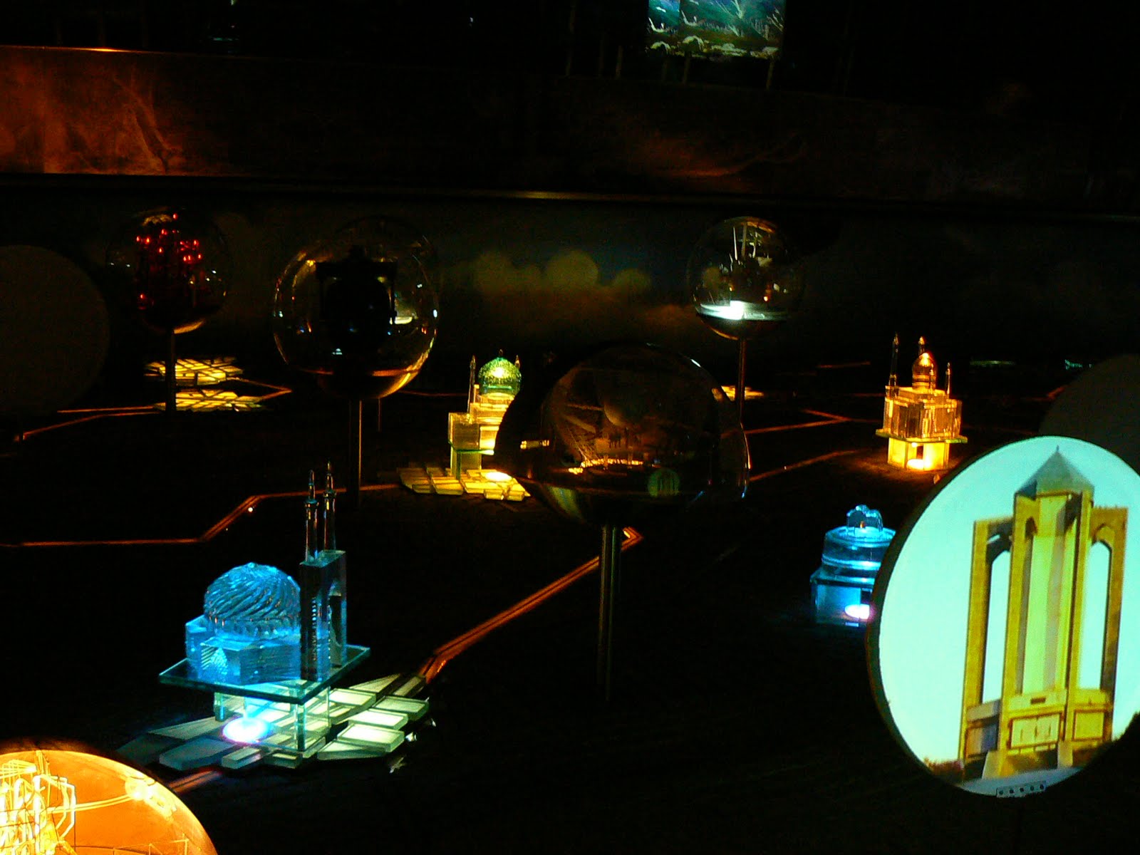 Intram intr-o sala mare, intunecata peste care ne deplasam pe o scara rulanta. Ici si colo, niste cladiri din sticla laminate… Am o revelatie – este harta Iranului, iar aceste cladiri sunt niste cladiri-simbol din fiecare oras. Evident, marea majoritate sunt moschei.