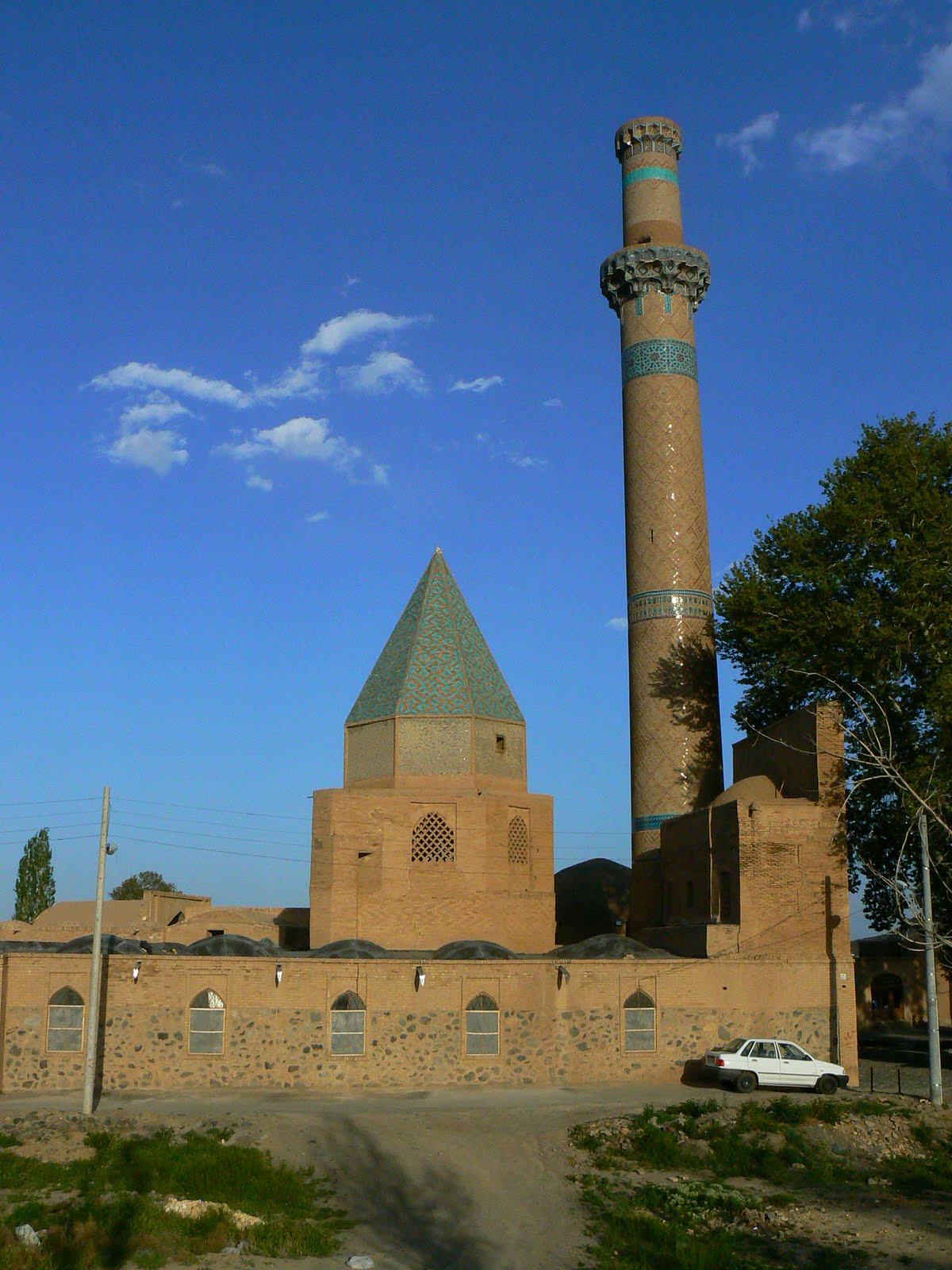 Pe drumul spre Esfahan, ne-am oprit si in orasul Natanz,. Da, acela cu centrifugele… evidfent ca uzina de imbogatire nu se afla in mijlocul orasului, ci la vreo 10 – 20 km de oras, in schimb in oras poti gasi o moschee pitoreasca, tapetata cu faianta colorata, stralucitoare, prevestind parca minunile din Esfahan.