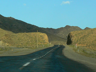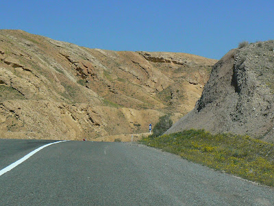 Dupa ce am parasit Kashan-ul, am parasit si zonele plate de campie… Au aparut muntii plesuvi, erodati de clima aspra a podisului iranian (aici iarna, termometrul scade puternic sub zero, iar vara, temperaturile de 50 grade sunt un lucru obisnuit), un spectacol fascinant… Si au aparut intr-un final si varfurile de aproape 4000 metri, incarcate cu zapada…