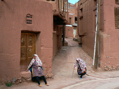 Urmatorul obiectiv dupa Kashan a fost satucul Abyaneh. Abyaneh este un sat considerat special in Iran. Este una din ultimele asezari unde inca se vorbeste persana de Ev Mediu, straiele traditionale sunt extrem de colorate intr-o tara in care negrul chador-ului este considerate culoarea “care trebuie”, in plus datorita asezarii la poalele unui munte de aproape 4000 de metri este foarte racoare vara… Asa ca multi turisti iranieni aleg sa se refugieze de canicula la Abyaneh. Sa nu va inchiputi ca veti gasi mega-hoteluri, telecabine si alte minuni ale turismului de masa. Hoteluri sunt, dar in orasul nou, in timp ce satul clasic continua sa fie locuit de localnici in case de chirpici rosu cu doua etaje – iarna locuiesc la parter, iar vara la etaj, cu ulite pline de meandre si cu un aer dintr-un alt veac.