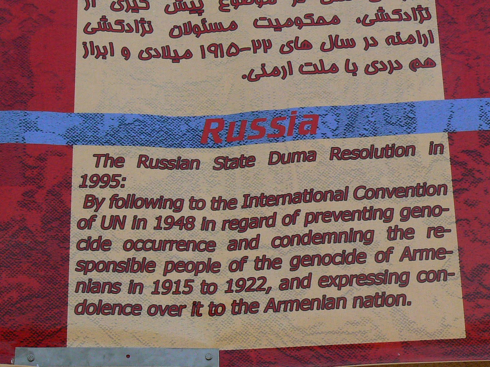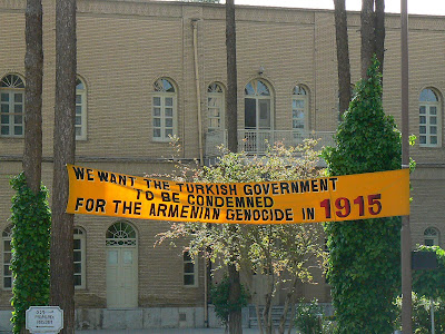 Catedrala Vank este intr-o curte cu ziduri ca de cetate. Cum am intrat, am dat peste un banner care scria ca armenii vor ca guvernul turc sa fie condamnat pentru genocidul din 1915… Iar zidurile erau pavoazate cu citate din declaratii ale diverselor Parlamente si alte organisme din lume care condamnau genocidul… Despre genocidul armean, poate stiti, poate nu stiti… In timpul primului razboi mondial, rusii s-au luptat cu turcii. Turcii i-au suspectat pe armeni ca ii sprijina pe rusi, asa ca au hotarat sa scape de ei din zona de conflict – la milioane li s-a ordonat sa-si paraseasca casele si au pornit pe jos spre Siria si Liban… Aproape 1.5 milioane de copii, barbati si femei si-au pierdut viata in acest mars al mortii… Alte mii de armeni au fost ucisi in Istanbul ca “tradatori”.