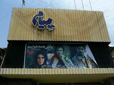 Hotelul nostru fiind in centru si desi era cam tarzior, nu am ratat ocazia sa dau o fuga prin oras. Shiraz are proasta reputatie sa fie insa capitala fast-food-ului din tot Iranul. Pe bulevardul principal – bulevardul Zand, gasesti fast food dupa fast food (kebab, hamburgeri, hot dogi, pizza, pui la rotisor – remarcati fusionul americano– italiano – iranian :)), cinematografe anuntand filme de actiune iraniene si micile supermarketuri de unde am cumparat sampanie iraniana (adica suc de struguri cu apa minerala, importat tocmai din Spania !)