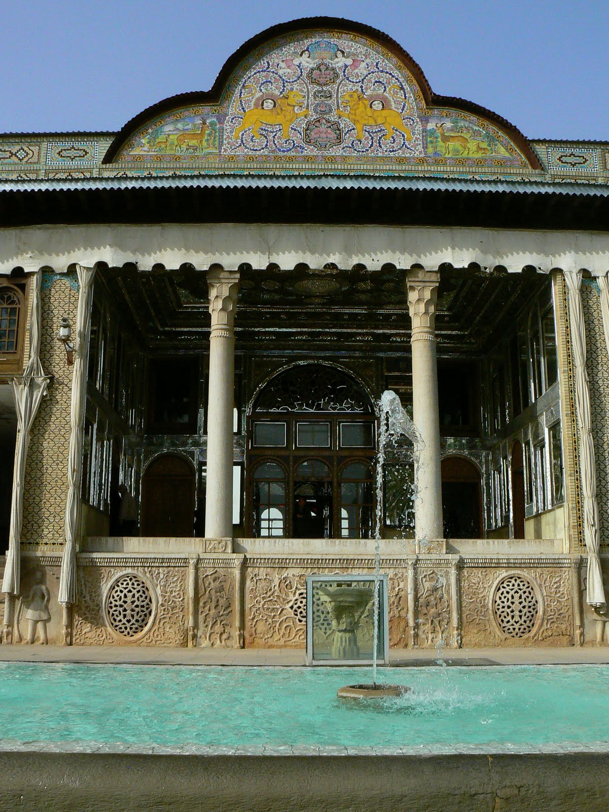 In interior, o placuta gradina (suntem totusi in tara gradinilor), iar in palat, o interesanta expozitie de fotografii de pe la 1900. Cea mai tare poza pe care toatal lumea o poza era un tip care tinea pe mainile sale larg intinse alti doi indivizi ! In rest, lume simpatica si dornica sa faca poze cu straini, pisici prin gradina si o fantana datatoare de racoare… Shirazul este cel mai sudic punct in care ajungem si se simte asta – daca in Teheran e racoare de primavara, in Shiraz suntem in plina vara !
