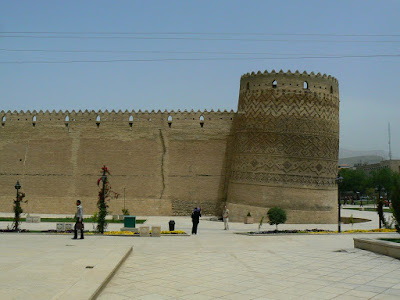 A doua zi dimineata, am luat la picior Shiraz-ul… Cel mai apropiat obiectiv cetatea Arg e-Kharim. Doua cuvinte despre Karim Khan. Daca Esfahanul este ceea ce este datorita lui Shah Abbas, Shiraz-ul ii datoreaza numeroase cladiri lui Karim Khan, sah din foarte scurta dinastie Zand.care si-a mutat capitala la Shiraz. Cetatea nu este foarte mare, dar e interesanta pentru ca unul din turnurile de la extremitati este inclinat… un turn al Pisei iranian…
