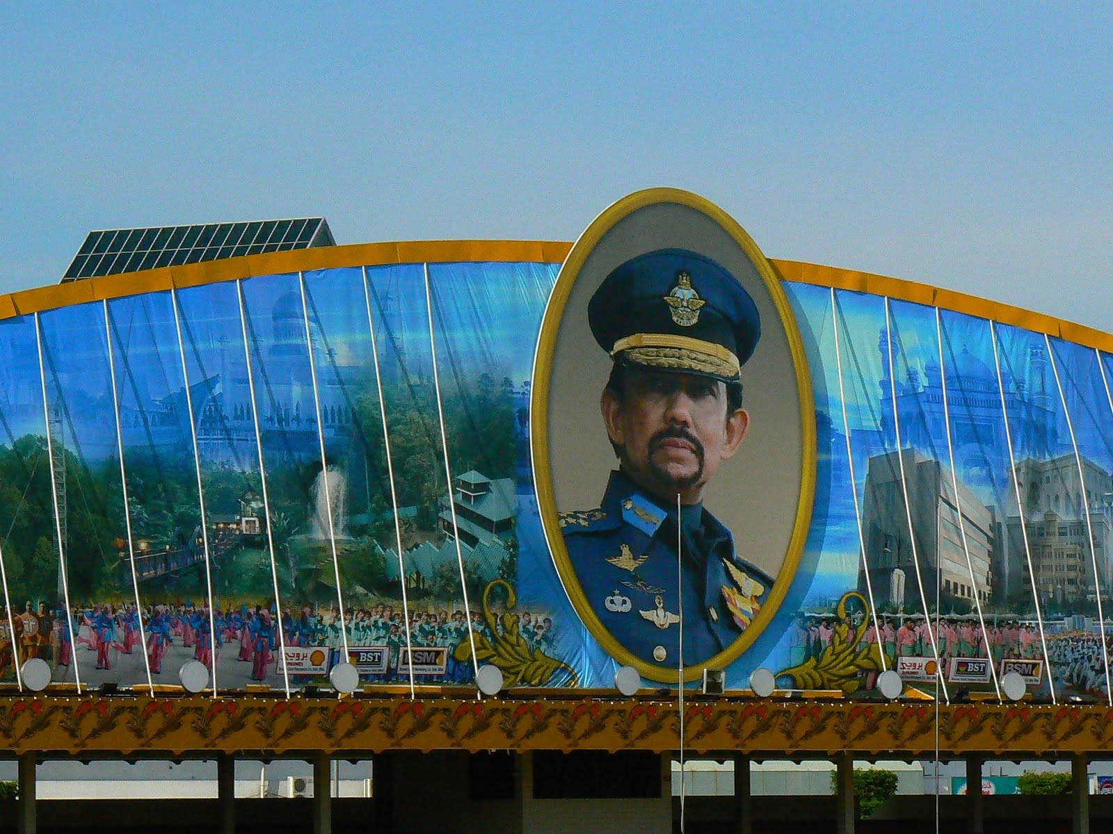Bruneiul este un mic regat musulman aflat in insula Borneo, insula care mai este impartita de Malaezia si Indonezia. Are iesire la mare, dar este inconjurat din toate partile de Malaezia. Acum cateva secole, era un regat mare si important care ingloba aproape intreaga insula Borneo, dar si insule din sudul Filipinelor. Dar aparitia europenilor au bagat Bruneiul la apa pana a devenit mic, mic, mic… De altfel, provincia malaeziana invecinata, Sarawak a fost condusa timp de un secol de o dinastie britanica – asa-numitii “raja albi” care au inghitit incet, incet marele Brunei. In 1929, cand era sa fie inghitit cu totul, tocmai s-a descoperit petrolul, iar Marea Britanie a transformat tara in protectorat (Raja albi erau de fapt niste intreprinzatori particulari care pusesera mana pe putere in Sarawak, nu erau supusi ai Coroanei Britanice).