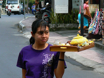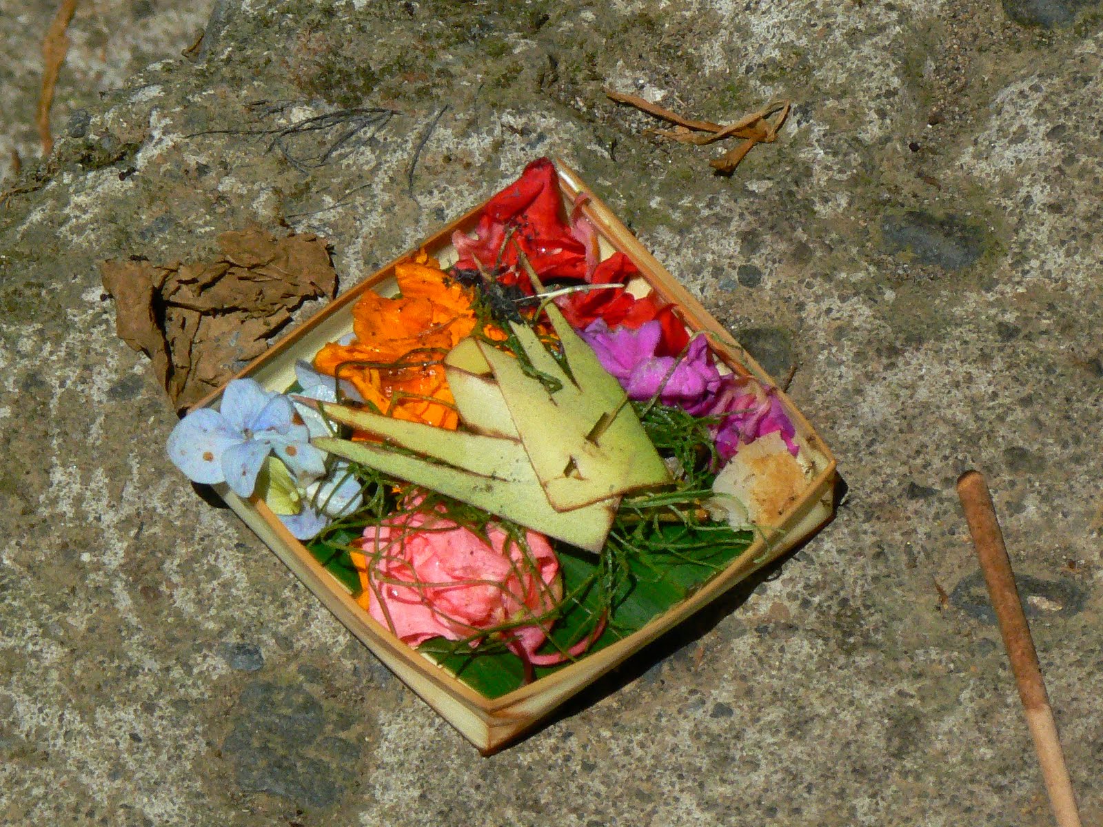In Ubud, am sosit venind din Singapore. Am tras in pensiunea Sehati, despre care am povestit pe larg intr-un post de acum cateva luni, iar a doua zi am luat la pas orasul. In primul rand, cum m-am sculat de dimineata, am putut sa fiu martor la ceremoniile de dimineata cand in fata fiecarui hotel, restaurant, magazin sau internet café, sunt depuse ofrande – flori intr-un cosulet impletit din frunze de banan. Bali este tara florilor si fructelor, iar pamantul este extrem de roditor fiind pamant volcanic…