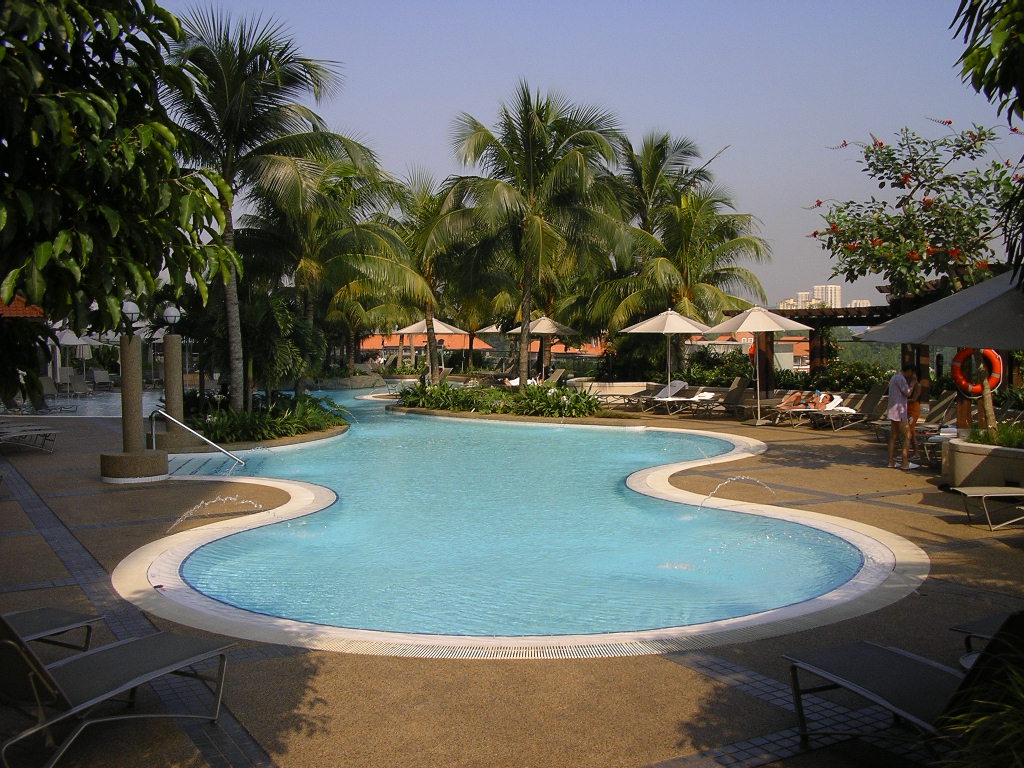 In primul rand, cele doua hoteluri sunt construite pe o platforma suprainaltata de cateva etaje bune (dedesupt e un mall, statia de tren, parkinguri, etc) unde impart o gradina comuna cu piscina … nu este ceva iesit din comun, dar, hei, Hilton si Le Meridien KL sunt business hotels, nu de leisure. Totusi, nu pot sa nu neg ca o seara calduroasa in piscina nu e o amintire memorabila, urmat de un masaj la spa…