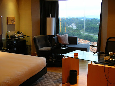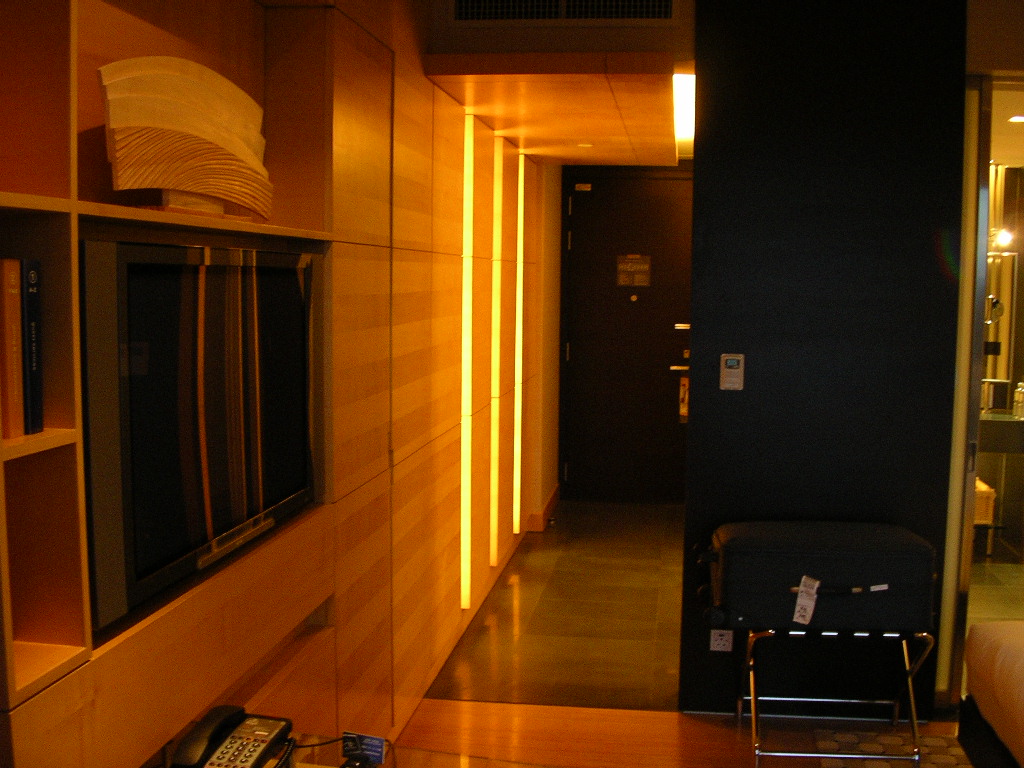 Dar cum am mai spus, camerele sunt cele ce mi-au ramas in memorie. Simplu… pentru ca puteai sa ti-o configurezi singur… Aveai o camera, o baie (cu televizorul in oglinda sa nu care cumva sa pierzi breakingnews cat esti la dus) si un culoar, dar cu ajutorul unor pereti de lemn (bambus sau tek, nu mai mi-aduc exact aminte), puteai sa-ti configurezi camera cum vrei… voiai ca baia si dormitorul sa fie in aceeasi camera – mai sexy. Nici o problema. Voiai sa-ti configurezi un birou, sa muncesti linistit,. Nici o problema. Voiai sa “feel free” sa nu mai ai nici un perete… le retrageai… Greu sa te plictisesti. Iar in plus, panorama era superba – aveai in fata imensul parc din spatele Moscheii Nationale, iar in dreapta, departe, se profilau siluetele blocurilor din Golden Triangle si a turnului de televiziune (Menara KL).