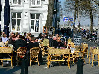 Maastricht este un oras neobisnuit in Olanda… Are o atmosfera unica in tara, fiind cunoscut prin joie de vivre (de fapt unul din pub-urile populare din Maastricht se cheama Joie de Vivre). Este capitala unei enclave, provincia Limburg, o limba de pamant care se strecoara intre Belgia si Germania. Este majoritar catolica intr-o tara profund protestanta. Se afla plasat la 2 km de Belgia flamanda, la 20 km de Belgia valona si la 40 km de Germania, deci se afla la rascrucea a trei culturi, trei limbi, trei natiuni – olandeza, franceza si germana… De aceea este un oras tolerant, multi-cultural si in care nu e neobisnuit sa gasesti vorbitori a 4 limbi (cele 3 limbi din zona + engleza). Ma rog, exista si un dialect local – asa numitul maaastrichtse, o olandeza cu influenta latina….