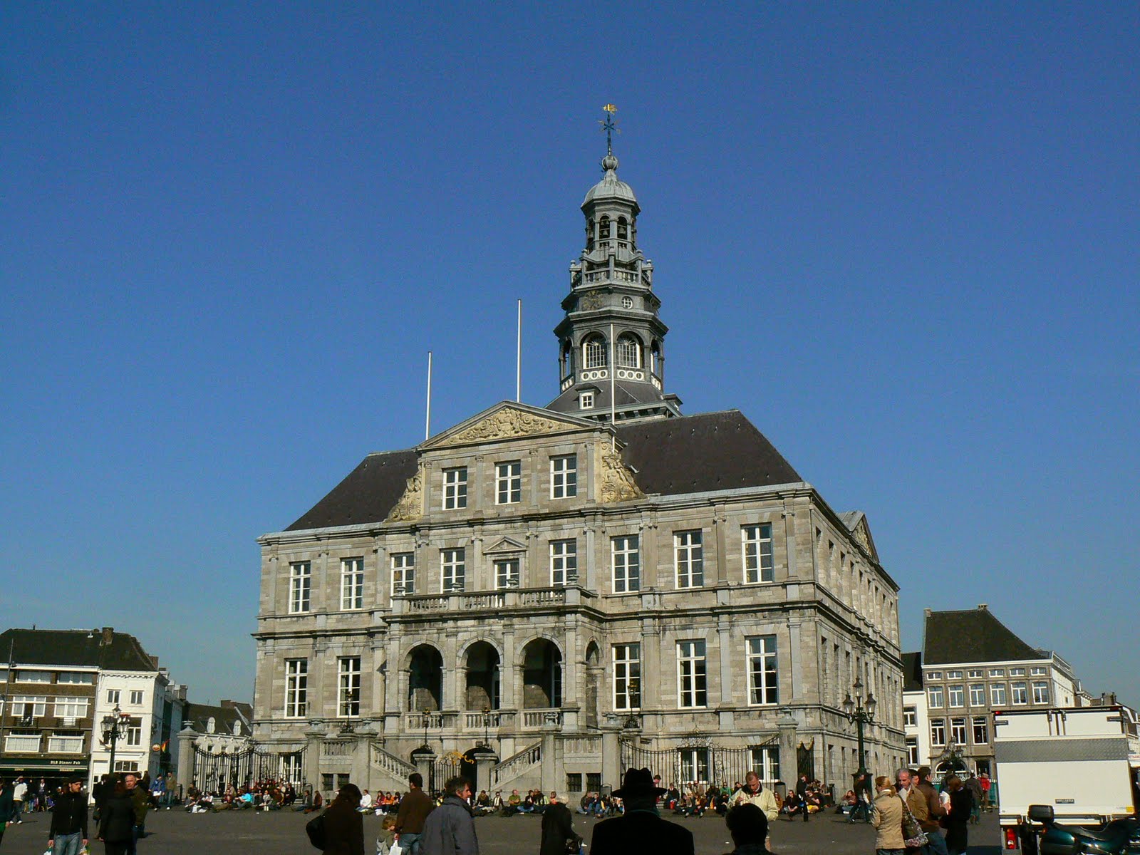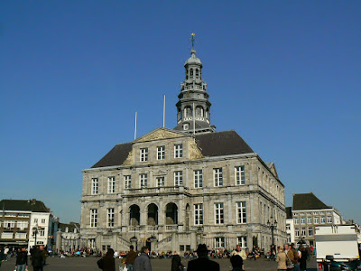 Din Vrijthof, daca o luati la dreapta, ajungeti in Markt, cea de-a doua piata centrala din Maastricht, dominata de Primaria orasului – primaria are 2 randuri de scari nu pentru simetrie, ci pentru ca la un moment dat erau doi primari – unul olandez si unul spaniol (Tarile de Jos au fost sub ocupatie spaniola la un moment dat) care nu voiau sa dea nas in nas.