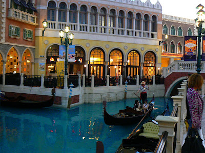 The Venetian nu este in Macao propriu-zis, ci pe o alta insula numita Taipa. O insula mai dezvoltata si mai rurala pana sa apara The Venetian si alte cateva complexe gigant. Si cum observasem niste shuttle-uri gratuite, dupa turul de oras, m-am intors la port si am luat un shuttle spre marele complex. Langa mine, o familie de japonezi tocmai picati din Japonia via aeroportul Hong Kong. Si ce puteau sa faca niste japonezi intr-un autobuz…? Sa faca ce fac acasa – sa doarma ! Nici nu ne-am plecat bine si dupa 5 minute, autobuzul era zguduit de sforaituri.
