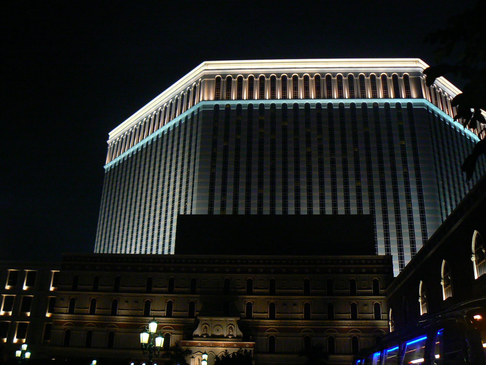 40 etaje, 1 milion de metri patrati construiti, 7 hoteluri, 3000 apartamente de lux, 3400 de jocuri mecanice, 800 de sali de joc si o investitie de 2,4 miliarde dolari. Este cel mai mare complex hotelier din Asia si cea de-a cincea cladire din lume ca suprafata dupa aeroporturile din Dubai si Beijing, sala de licitatii a florilor din Aalsmeer si imensul mall Central Plaza din Bangkok (cel caruia camasile rosii i-au dat foc la inceputul anului acesta). Este de un lux incredibil, este un univers al jocului si distractiei. Este cazinoul THE VENETIAN Macao, cel mai mare cazino din lume !