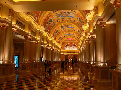 Dupa ce am depasit gigantica receptie care procesa sute de noi veniti cu o viteza uimitoare, am luat la picior un culoar extrem de lung… Peste tot, erau reclame cu spectacolul Zaia, un show al lui Cirque du Soleil… Nici nu vreau sa-mi inchipui cum este… De altfel, The Venetian are reputatia sa gazduiasca cele mai tari show-uri de pe planeta. In cei trei ani de cand a fost deschis, aici au cantat Lady Gaga, The Pussycat Dolls sau The Police, au jucat baschet Cleveland Cavaliers contra Orlando Magic, iar Andre Agassi a jucat un meci cu Pete Sampras ca sa pomenesc doar marile staruri. Sau cel mai vizionat eveniment de pe planeta, IIFA Awards, echivalentul Premilor Oscar pentru Bollywood.