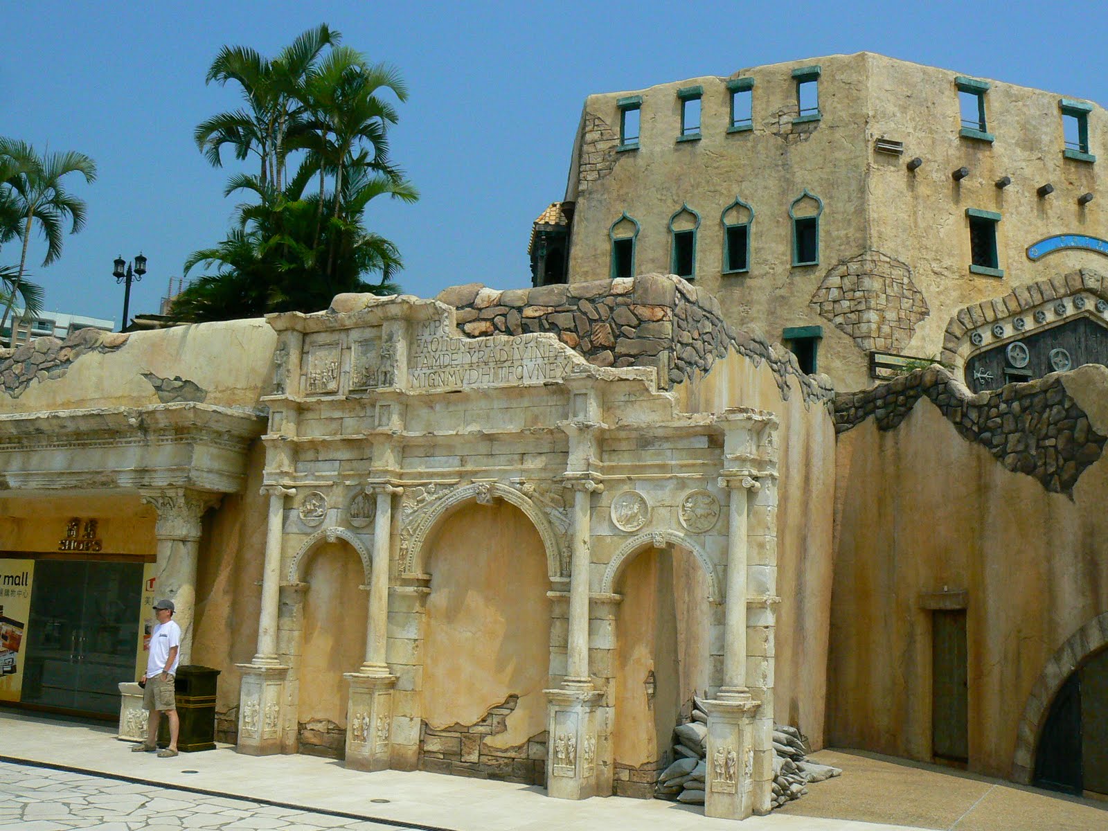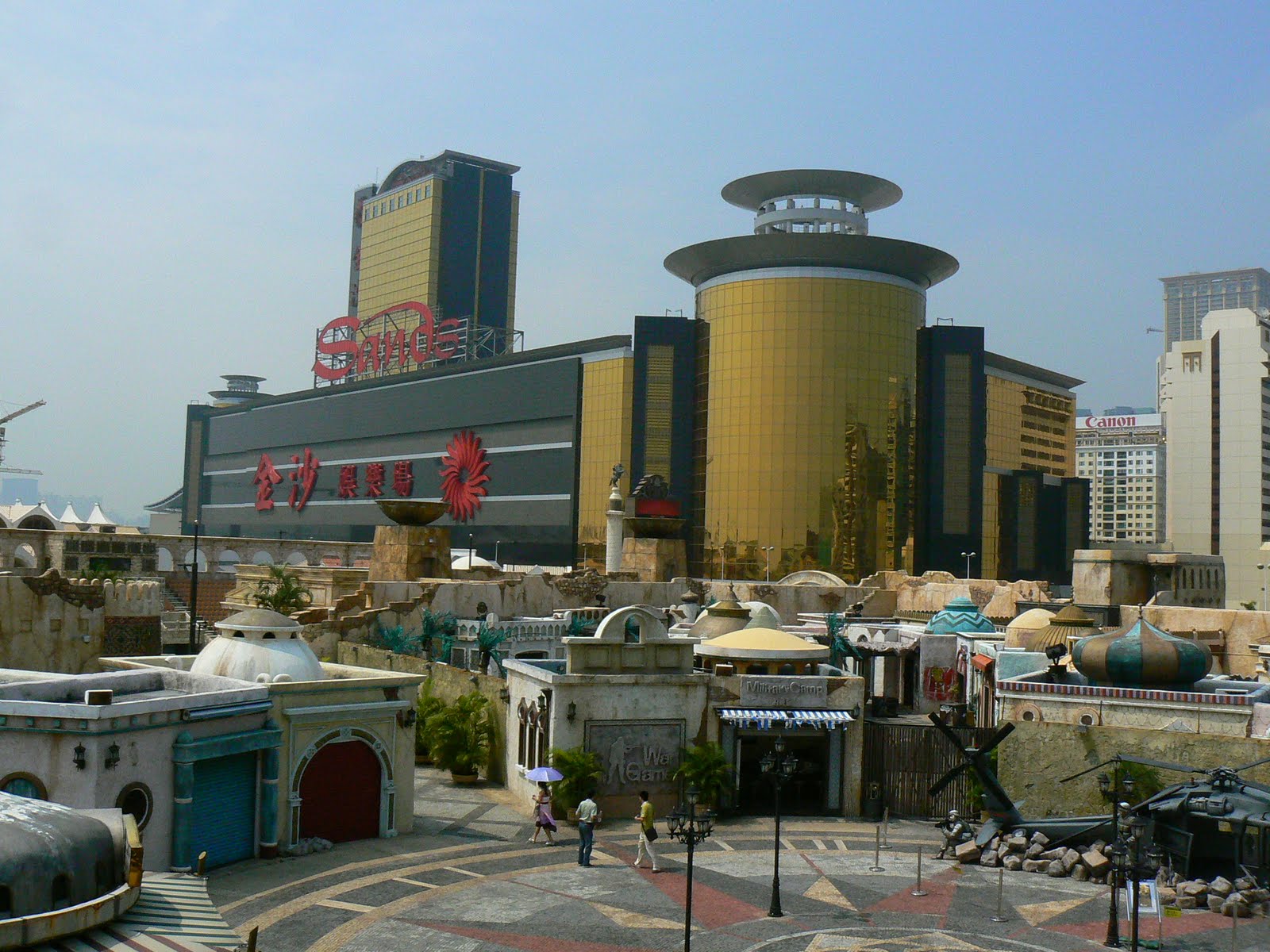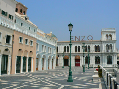 Mai incolo, intram in zona de magazine, restaurante si baruri si ele adapostite in cladiri ce imi aminteau de Amsterdam, Berlin sau Italia. Dar in ciuda acestor cladiri care intareau spiritul european a orasului, totul se afla in umbra siluetei giganticului cazino Sands.