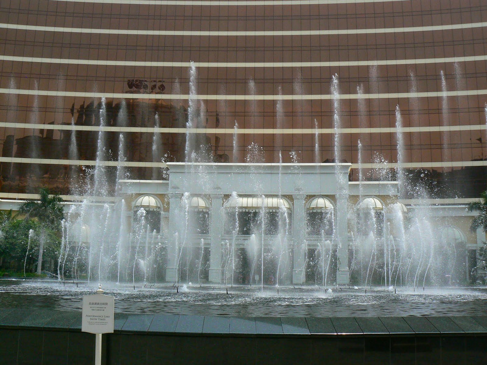 Urmatorul este Wynn. Din nou un bloc imens, din nou vreo 600 de camere, nu mai putin de 212 mese de joc si 375 de aparate de jocuri mecanice… Incep sa ma “vaccinez”… e mare, e frumos, are de toate, dar parca nu e Sands… E drept, are Armani si Gucci, si Bulgari, si Zegna, si Hugo Boss… Dar nu mall-ul de mare lux iese in evidenta, ci o superba fantana unde apa danseaza la fiecare 10 – 15 minute… A fost gandita tot de baietii care au facut si fantana din fata lui Bellagio la Las Vegas (o stiti din nu stiu cate filme, inclusiv din Ocean’s 11), iar dansul apei este realemente superb… Nici nu vreau sa stiu cum o arata noaptea cand ai parte si de o luminatie feerica.