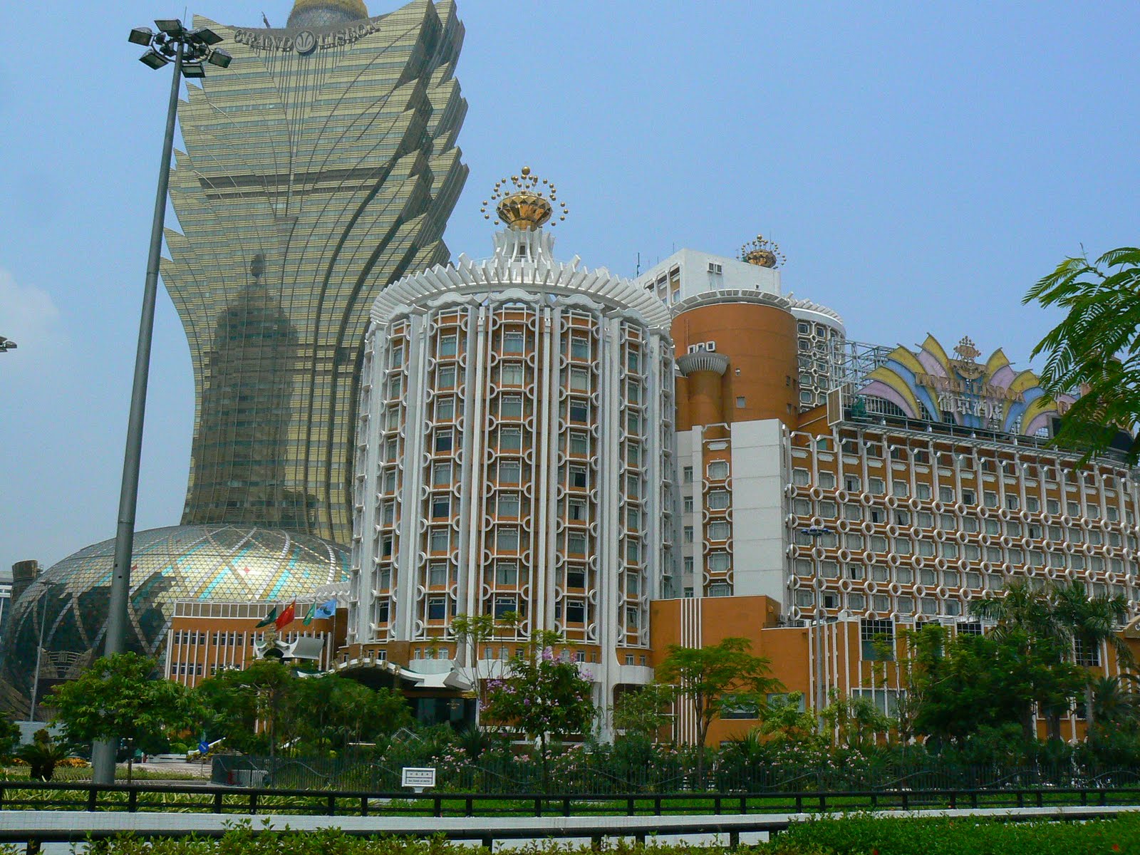 Realmente peste drum, se afla cazinourile Lisboa, clasicele cazinouri ale lui Ho… Este si cel vechi, mai prafuit, aratand ca un tort chinezesc, dar si giganticul Grand Lisboa, raspunsul luio Ho la provocarea lui Sands, Wynn & co… Are un turn cu o forma ciudata, dar este imens de inalt, se poate vedea din tot Macao… si pentru ca americanii au turnat hoteluri cu 600 de camere, Ho a facut un cazino – hotel cu 1000 de camere. Sa arate cine e jupanul in fostul teritoriu portughez !