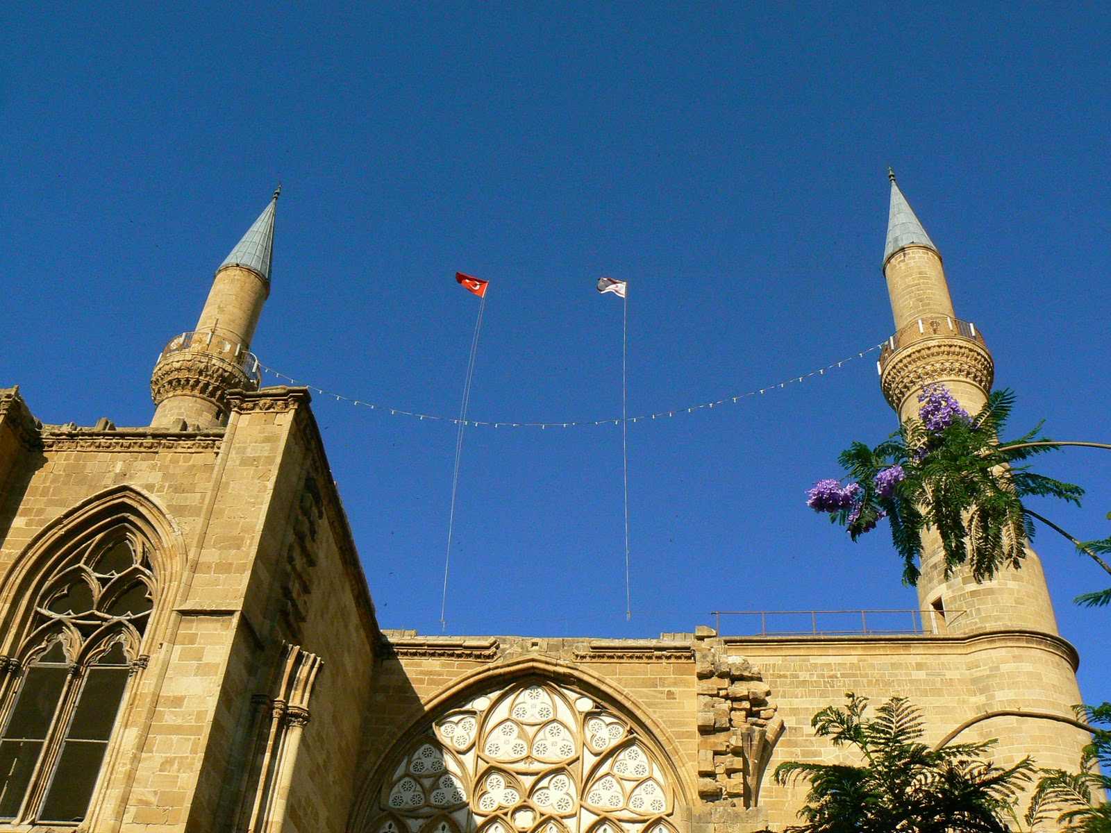 Nicosia de Nord are si ea partea ei de monumente. Aici se afla cladirea cea mai monumentala din istorica Nicosie – imensa Moschee Selimye… pardon, Catedrala Sfanta Sofia… Ca si omonima sa din Istanbul, Sfanta Sofia a fost catedrala crestina… de fapt catolica, este o biserica catolica, imensa, construita in stil gotic cum vezi prin Franta sau Spania. In 1570, cand orasul a cazut in mainile otomanilor, acestia au pastrat cladirea intacta, au aruncat altarele si statuile de sfinti si au construit doua minarete, transformand-o in moschee si redenumind-o in cinstea sultanului Selim II… Astazi, de cele doua minarete atarna infratite steagul ros-alb cu semiluna a Republicii Turce si steagul alb-rosu cu semiluna a Republicii Turce a Ciprului de Nord… Daca Sf. Sofia din Istanbul cu arhitectura sa tipic bizantina parca iti sugereaza ca ar fi moschee, in schimb, moscheea din Nicosia pare cu totul la nelocul ei cu aceasta arhitectura gotica !