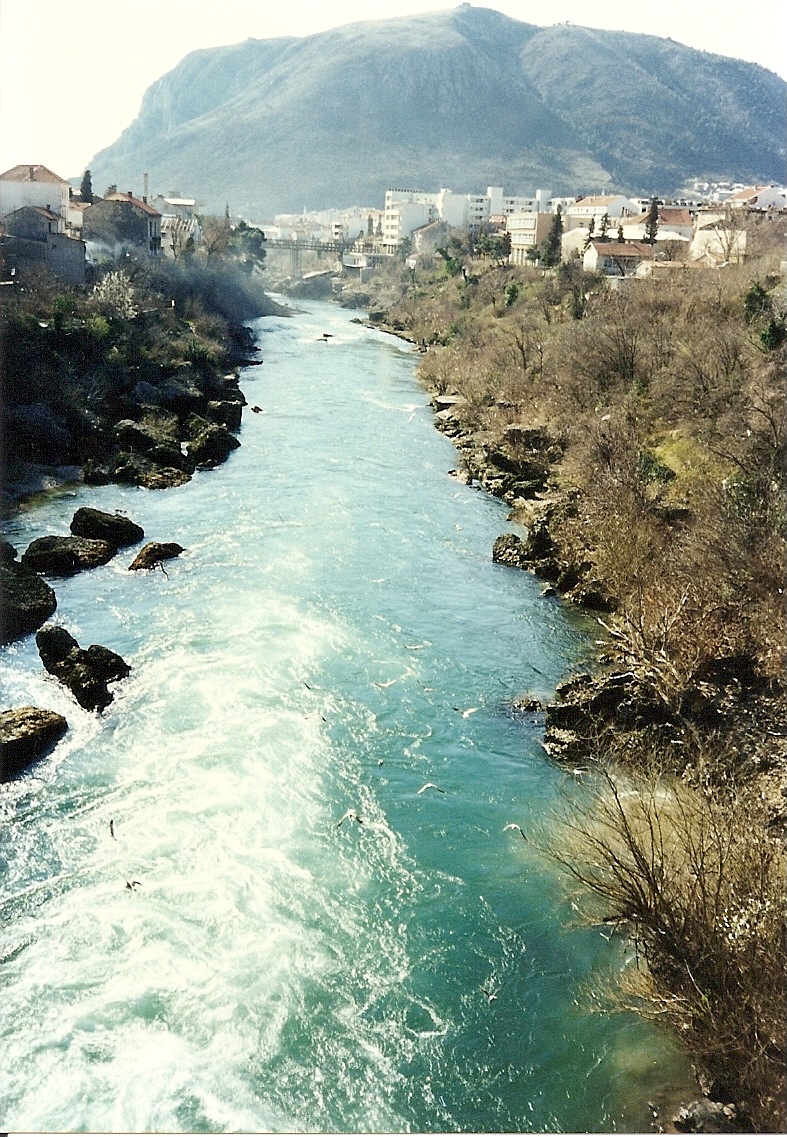 Valea Neretvei se strange, se strange, trecem prin niste chei magnifice, printre sate neatinse de razboi si sate complet parjolite. Cand ne apropiem de Mostar, valea se deschide brusc si simti o boare de Adriatica… cerul e albastru, s-a dus plumbul de la Sarajevo ! Dar Adis devine brusc preocupat… Nu mai spune ca e “the best”… dreapta soselei este in maini croate, soseaua este in maini bosniace… iar masina noastra are numere musulmane – de Sarajevo… Si nu e neobisnuit ca vreun croat suparat sa mai traga dupa masini de Sarajevo….