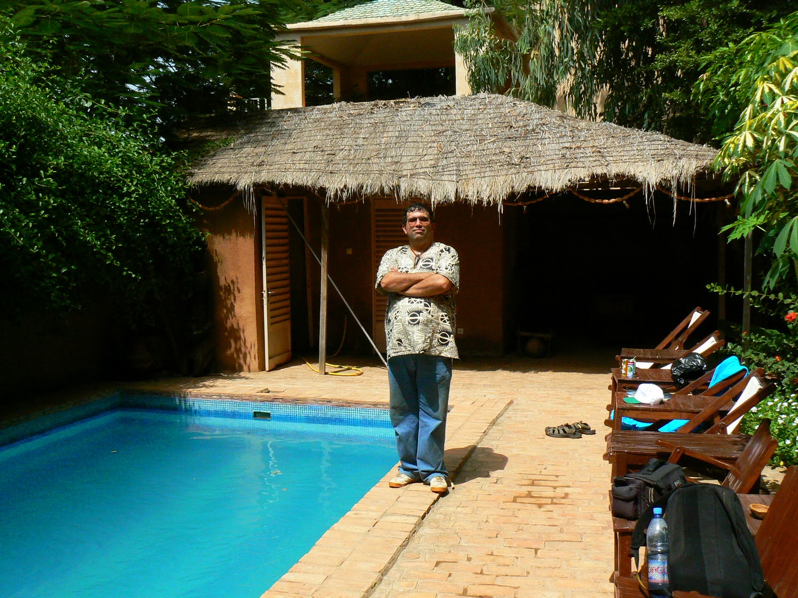 Facilitati ? Pai tot ce trebuie la casa turistului… un colt cu doua computere antice care se misca in reluare (de acolo am scris niste posture chinuite), un restaurant pe acoperisul cladirii si mai ales o pisicina care aduce cu piscinele din hotelurile de mult mai multe stele decat stabilimentul din Mopti.