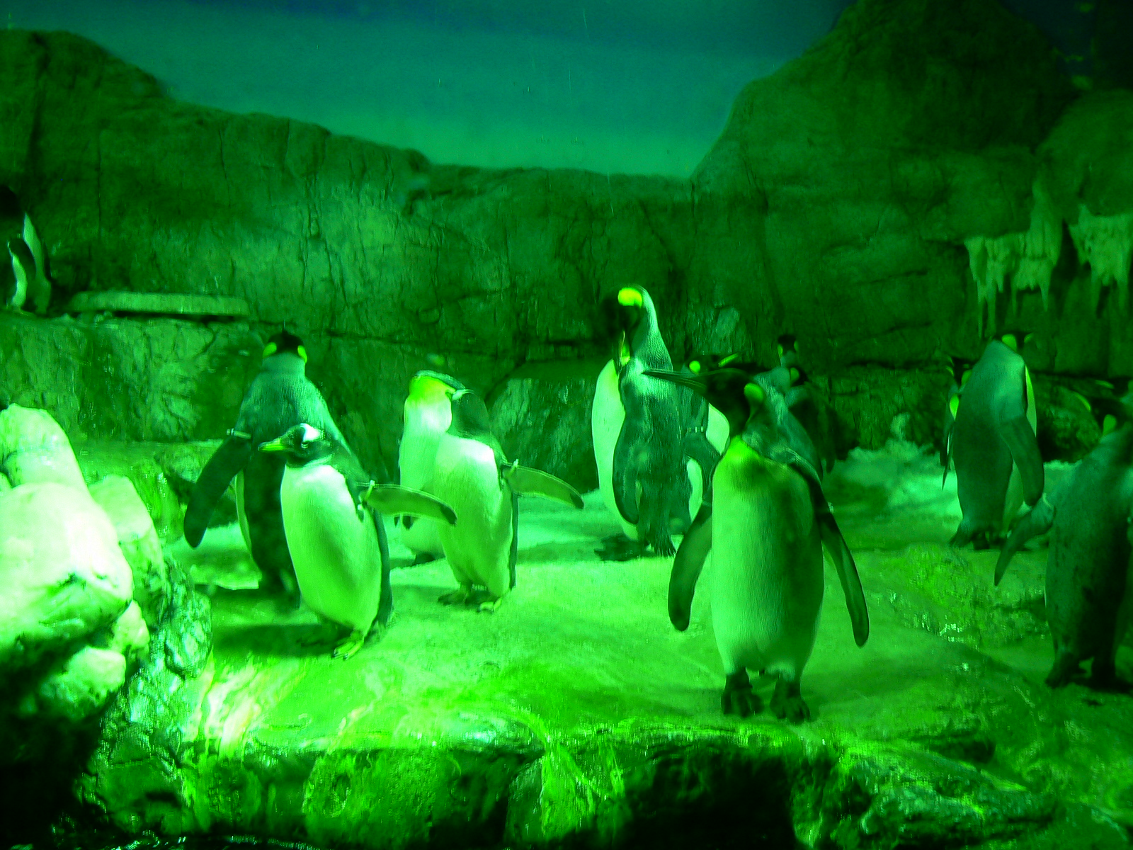 In rest, am trecut dintr-un habitat in altul… Aquariumul este organizat pe diverse habitate… Evident, ca in primul rand, ai parte de lumea marina din jurul Japoniei. Zona se numeste Japan Forest si poti vedea pestii de rau – pastravi, salamander. Evident, intr-un alt bazin, ai parte de Japan Deeps – vietuitoare care supravietuiesc la mari adancimi, unde lumina soarelui nu prea patrunde. Apoi, ai parte de o excursie in jurul lumii – fie ca sunt apele reci ale insulelor Aleutine sau coasta rece a Chile-ului ori Gulf of Panama si Ecuador Rain Forest care replica jungla tropicala… Aici, pestii sunt colorati, sunt superbi, sunt entuziasti…Iar in zonele reci, nu se poate sa nu te amuze brebii cei simpatici.