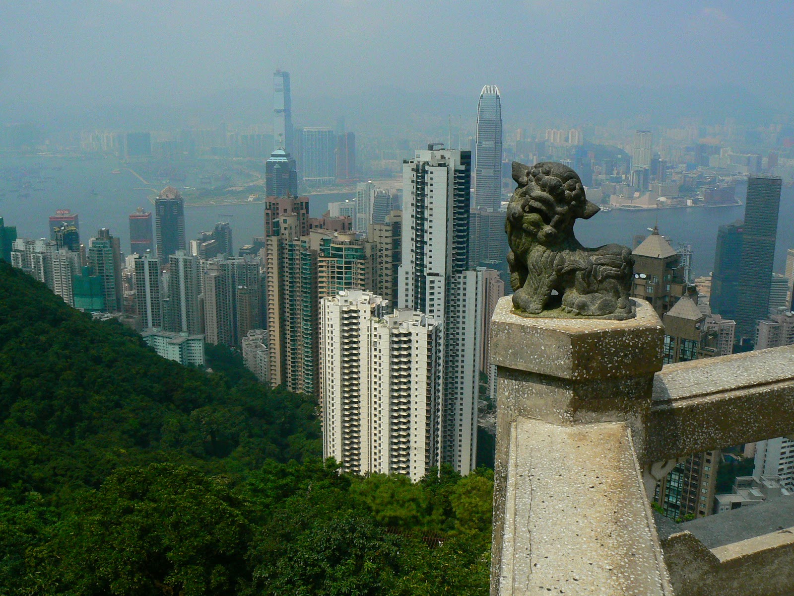 Aici, gasesti si fotografi profesionisti gata sa-ti faca poza si sa ti-o livreze pe loc sub forma de poza sau poster, dar mai ales multa lume…` Ce ai de vazut… pai cam tot Hong Kongul… la picioarele tale sub un brau de verdeata, se afla blocuri de locuinte de zeci de etaje, inalte si subtiri, subtiri… In spatele lor, celebrele landmark-uri cum ar fi Bank of China sau International Commerce Center (are 108 etaje), terminat anul acesta si ocupand locul 4 in clasamentul celor mai inalte cladiri din lume… Puteti vedea ca si dincolo, pe peninsula, au inceput sa apara turnuri din ce in ce mai indraznete… pana acum blocurile din Kowloon nu au fost niciodata prea inalte…
