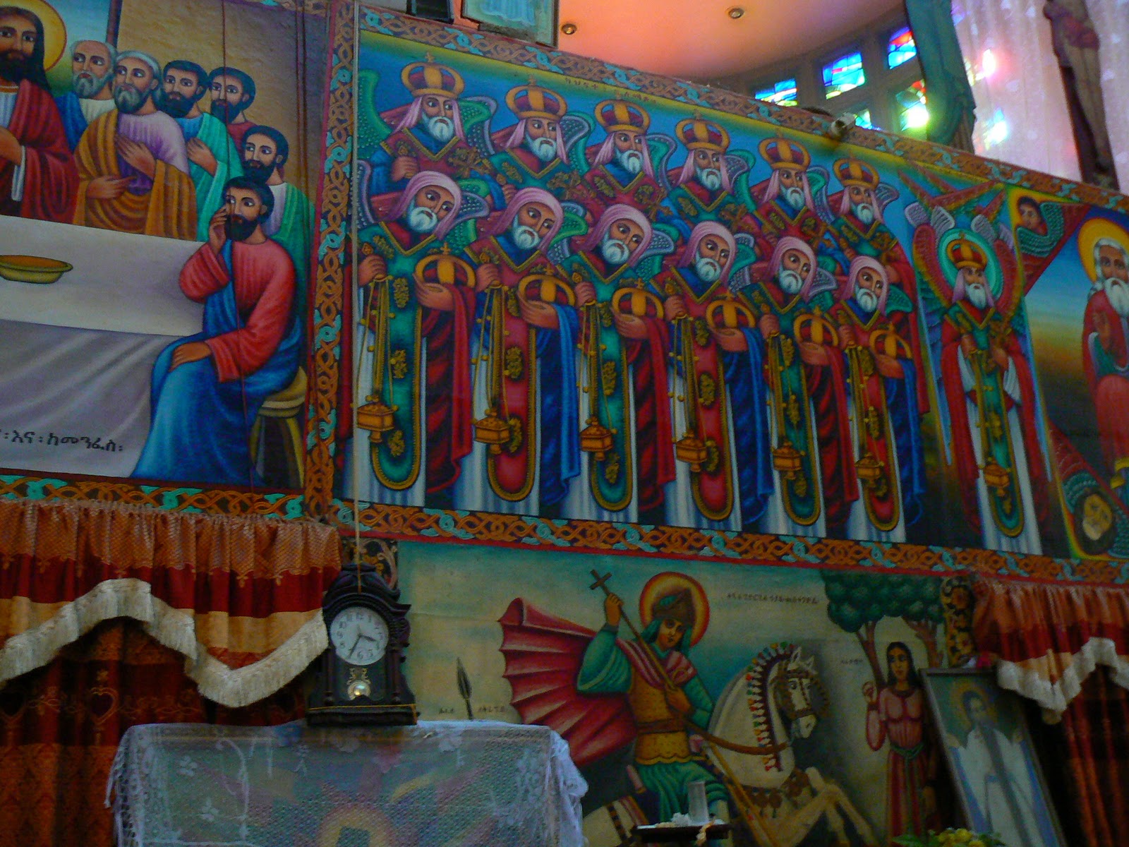 Inainte de a trece mai departe, cateva cuvinte despre ortodoxia etiopiana. Este o ortodoxie extrem de originala… in primul rand, ca si coptii, etiopienii sunt monofiziti. Adica ortodoxia etiopiana sustine ca Isus a fost doar un personaj divin, iar corpul sau a fost aparent, in timp ce restul (inclusiv biserica noastra) sustine ca natura lui Isus a fost atat divina, cat si umana… Sa nu uitam ca musulmanii il considera pe Isus (ca si pe Mohamed de altfel) un om, e drept ales, un mesager al lui Dumnezeu, dar totusi doar un om.