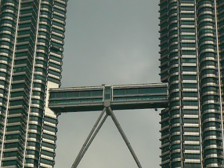 Se poate urca in varf? Ei bine, nu… turnurile Petronas sunt sedii de birouri, nu atractie turistica. Unul dintre turnuri este ocupat in intregime de Petronas si afiliatii, intr-alt turn fiind diverse alte firme, adapostind inclusiv unul dintre cele patru studiouri ale Al-Jazeera in engleza, alaturi de Doha, Londra si New York. Turnurile Petronas sunt deschise pentru business si mai putin pentru turisti… De altfel, doar cateva sute de bilete sunt date in fiecare zi cu incepere de la 8 jumatate dimineata (e drept, sunt gratuite) si poti sa urci doar pana la sky bridge, podul suspendat care leaga etajele 41 si 42 ale celor doua turnuri, aflate la “modesta” inaltime de 170 de metri (tot turnul are 451 de metri).