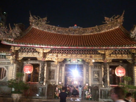 Langa piata de noapte Huaxi, cum iesi din statia de metrou, dai de unul dintre cele mai frumoase temple din Taipei, Longshan Temple, care merita sa fie vizitat datorita arhitecturii si pentru ca este unul dintre putinele locuri unde reusesti sa nu te mai simti in secolul 21 spre 22.