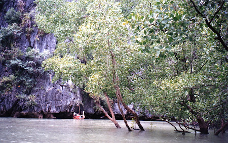 Restul zilei aproape ca nu a mai contat. Vasul a stat vreo doua ore ancorat in acest peisaj mirific si, in mod surprinzator, nu am fost deranjati decat de o barca, ce a facut un scurt tur si s-a scurs prin stramtoare inapoi spre mare. Imaginea locului mi-a ramas pe retina mult timp dupa… Si am plecat cu o strangere de inima a doua zi dimineata cu cursa Thai Airways in directia Bangkok… Dar, parca pentru a mai atenua strangerea de inima, pilotul ne-a oferit o trecere in revista a zonei Phang Nga de sus, din avion…