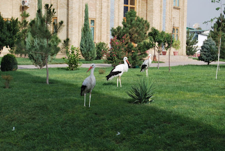 Primul punct de vizitare a fost Khast Imom, centrul religios cel mai important, format dintr-un complex de moschei si biblioteci, cu locuri de invatatura (medressa) islamica. Complexul este imens si foarte frumos, o desfatare a mintii si a inimii. Fiind dimineata, a fost si liber de turisti, asa ca am vizitat in voie. Imprejurimile moscheilor sunt cu gazon ingrijit, pe care am vazut foarte multe berze pe care uzbecii le ingrijesc cu evlavie. Peste tot in Uzbekistan, am vazut ca simbolurile fertilitatii sunt la mare respect, iar femeile uzbece sunt preocupate sa aiba mostenitori. Atat in Samarkand, cat si in Bukhara mai tarziu, am vazut ca exista locuri sfinte, a caror atingere este “aducatoare de urmasi”, iar femeile care nu au copii le inconjoara, se prosterneaza in fata lor sau leaga diverse naframe de acestea, in speranta schimbarii sortii. Revenind la Khast Imom, si aici exista cateva locuri speciale, iar berzele faceau parte din peisajul obisnuit. Urmatoarea escala a fost in Chorsu, un bazar gigant, o piata de legume si fructe si mirodenii in primul rand, unde poti sa vezi bogatia agriculturii uzbece, inca neintinata de industrializare. Este un mare privilegiu sa poti sa ajungi in asemenea temple ale mancarii. Este incredibil cate lucruri poti gasi si pe care ai dori sa le incerci macar, sa vezi cum miros, sa vezi ce gust au… Trebuie sa recunosc ca gustul multor legume sau fructe de aici nu are nici o legatura cu ceea ce se gaseste acum la noi. Poate ca are o legatura cu ceea ce era odata si, din pacate, nu mai exista acum in piete.