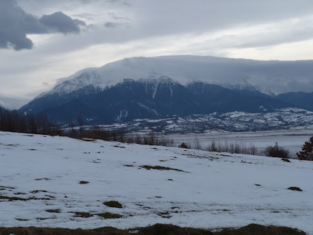 Drumul este cu adevarat frumos. Peisajul, nu drumul de acces care a vazut si zile mai bune… Am mers pe spinarea unui deal… de jur imprejur puteai vedea toate atractiile zonei… Piatra Craiului in spate, masiva, Bucegiul invaluit intr-un nor straniu (tot lumea zice ca Bucegiul e un loc cu proprietati extra-senzoriale), cetatea de la Rasnov si semnul ei hollywoodian, dar Branul intunecat sub un deal… Doar statia de televiziune sau Dumnezeu stie ce mai e acum de pe Postavarul semnala ca poate vine o vreme mai buna… N-a venit, a fost frig, dar un frig din acela sanatos, sa te revigoreze si sa te intareasca pentru a tine piept vantului care urma sa ne spulbere la intoarcere.