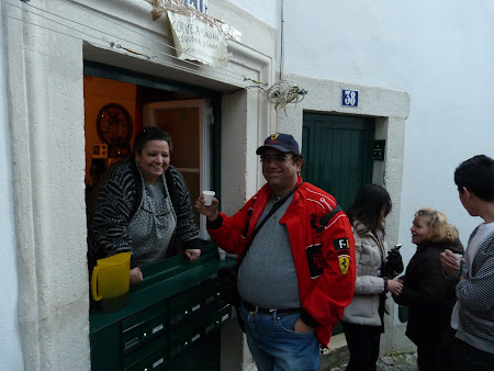 Intr-o astfel de casa am gustat o visinata de Alfama – ginginha… Am fost intrebati daca vrem… la inceput, mai cu jumatate de gura, apoi eu si inca cativa am spus da, vrem! Jose a batut intr-un geam de unde a aparut o Big Mama direct din telenovelele braziliene. A scos o sticla plina cu visinata si pahare de plastic de la Metro si pentru 1 euro am baut un paharel. Chiar bun! Apoi am primit visinele gratis!