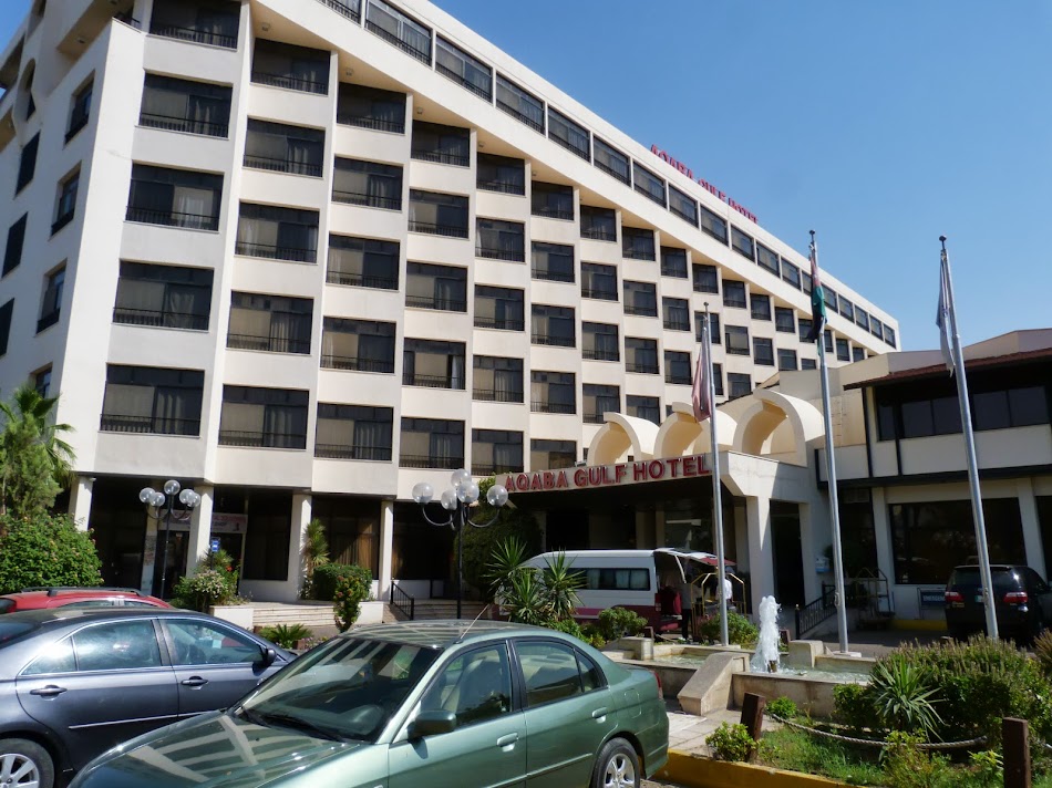 Aqaba Gulf Hotel – primul hotel pentru iubitorii de mare si soare din Aqaba… E inca OK, dar se vede ca nu e ultimul racnet in materie, insa are camere spatioase si confortabile si un aer conditionat care te criogeneaza daca nu-l potrivesti cum trebuie. Nu foarte departe este plaja publica, dar, atentie, persoanele de sex feminin nu pot face baie goale (adica in costum de baie), ci mai bine invelite (tricouri, saronguri, pantaloni lungi e OK. Hotelul asigura transfer la o plaja privata aflata la sud de Aqaba unde platesti 7 dinari (7,70 euro) pentru acces. Acolo, poti sa fii goala (adica in costum de baie, nu te gandi ca Iordania accepta toplessul).