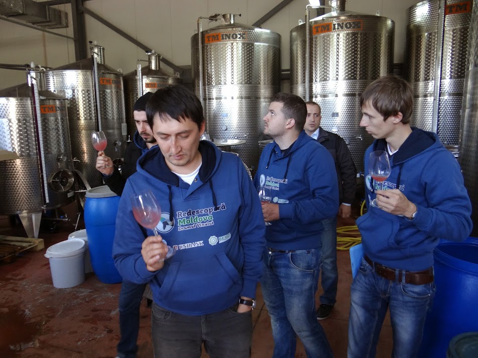 Ultima oprire a celei mai relaxate zile (de ce ne-o fi sculat Eugen la ora aia inumana?) a fost la Scoala de vinificatie din Nisporeni. Dupa cateva podgorii, unele de-a dreptul imperiale, altele regale si unele in care m-am simtit ca in familie, am descoperit un proiect sustinut de un om pasionat de vin, Ion Luca, patronul magazinului de vin Carpe Diem din Chisinau, unde, de fapt, incepuse proiectul “Redescopera Moldova – Drumul Vinului” cu o lectie de degustare cu doua zile inainte de a debarca la Chisinau. Ei bine, dl Luca s-a implicat nu numai in dezvoltarea unei culturi a vinului de calitate in Basarabia, ci si in formarea de cadre pentru a duce mai departe industria vinului in Moldova. A facut ce a facut si a obtinut niste fonduri din partea Austriei si le-a folosit in a construi doua mini-fabrici de vin atasate scolilor profesionale din Leova si Nisporeni, unde sa se poata forma viitorii viticultori ai Basarabiei.. si nu doar prin lectii teoretice, ci practice.