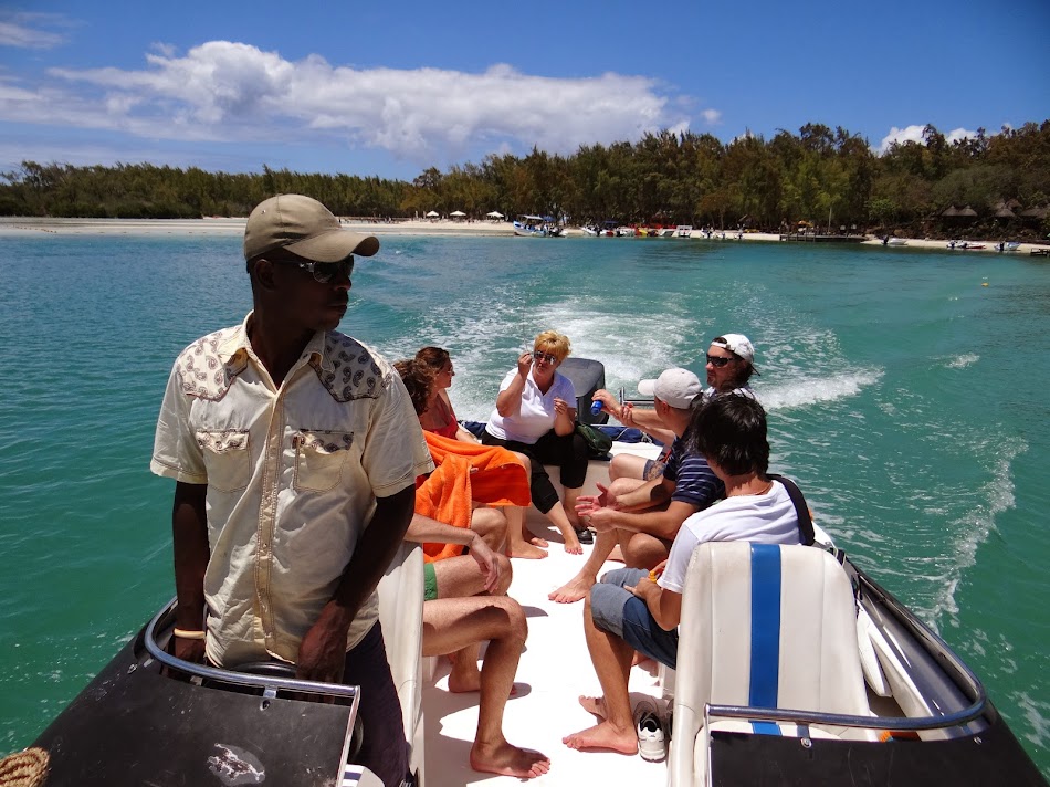Am iesit in larg si, dupa ce ne-am departat la cativa metri de insula, am putut sa admir incredibila culoare a marii pentru care Ile aux Cerfs este atat de faimoasa… acel verde uimitor, acea apa limpede prin care se intrevad pietrele, dar si coralii de dedesubt… iar soferul nostru a bagat si o viteza pentru o experienta plina de adrenalina. Yupiiii!