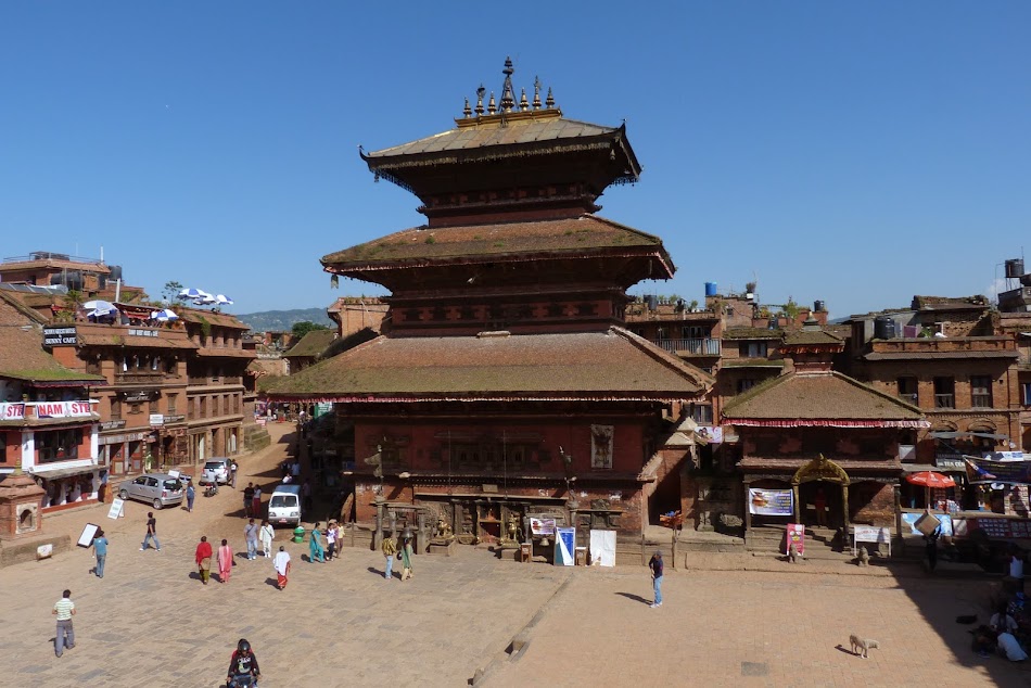 Viata turistica a Bhaktapurului graviteaza in jurul a doua piete centrale. Una este piata regala, Durbar Square, inconjurata de spatiosul palat regal (inauntru este un muzeu, dar toata lumea mi-a spus ca nu e cine stie ce) cu poarta sa monumentala, dar si cateva temple, evident cu scene erotice sculptate pe stucaturi.