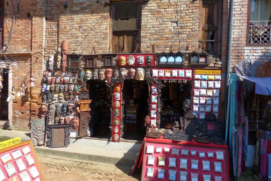 Nu te margini la cele doua piete super-bine aranjate… Ia-o si pe strazile din jur… reapare jegul, reapar motociclistii cu scuterele lor istorice, dar merita sa iei o gura din Bhaktapurul adevarat. Nu departe se afla piata olarilor. Bhaktapur este faimos in tot Nepalul (si, zice-se, chiar si India ori Bhutan) pentru oalele lor si poti sa vizitezi un atelier (ma rog, mult spus, e mai mult o dugheana cam in aer liber, in care un mester olar invarte roata si creeaza diverse forme) sau sa fotografiezi oalele lasate la uscat in soarele puternic de la 1.400 de metri altitudine. In ultimii ani, mesterii s-au specializat si pe obiecte pentru turisti (nu, nu fac magneti!), cum ar fi masti, precum si obiecte ceva mai artistice …