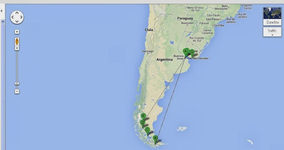 Dupa o zi in Buenos Aires pentru a ma acomoda cu fusul orar si a lua pulsul Argentinei, iar a doua zi voi zbura in Ushuaia, in Tara de Foc. Acolo, voi merge sa vizitez o colonie de pinguini si, cel mai probabil, sa ma dau cu barca pe canalul Beagle. Apoi, voi trece in Chile, la Punta Arenas, unde ma va prinde si Anul Nou si eu voi mai prinde niste foci si pinguini (evident, pe cardul SD J). Mai apoi, Puerto Natales, la capatul unui fiord chilian, de unde voi merge in zona Torres del Paine, un masiv muntos care, judecand dupa poze, arata senzational pentru a-mi termina turul din sudul Americii Latine la El Calafate, la faimosul ghetar Perrito Moreno. Si pentru ca am nevoie de un pic de vara in ianuarie, voi reveni la Buenos Aires, unde sunt 30 de grade si voi da si o mica tura prin Uruguay, in Colonia (un soi de Sighisoara a Uruguayului) si Montevideo, capitala, aflata peste garla de Buenos Aires. Voi reveni tot cu o cursa KLM inapoi in tara (de data asta voi avea ceva mai mult timp de stat prin Amsterdam, adica vreo 4-5 ore :)).
